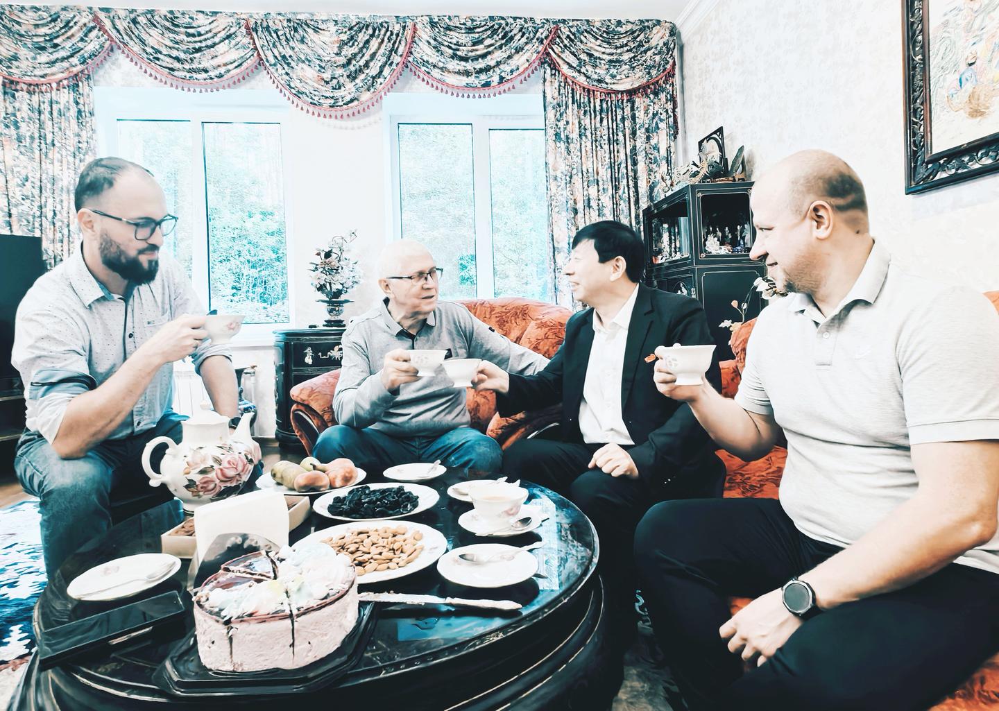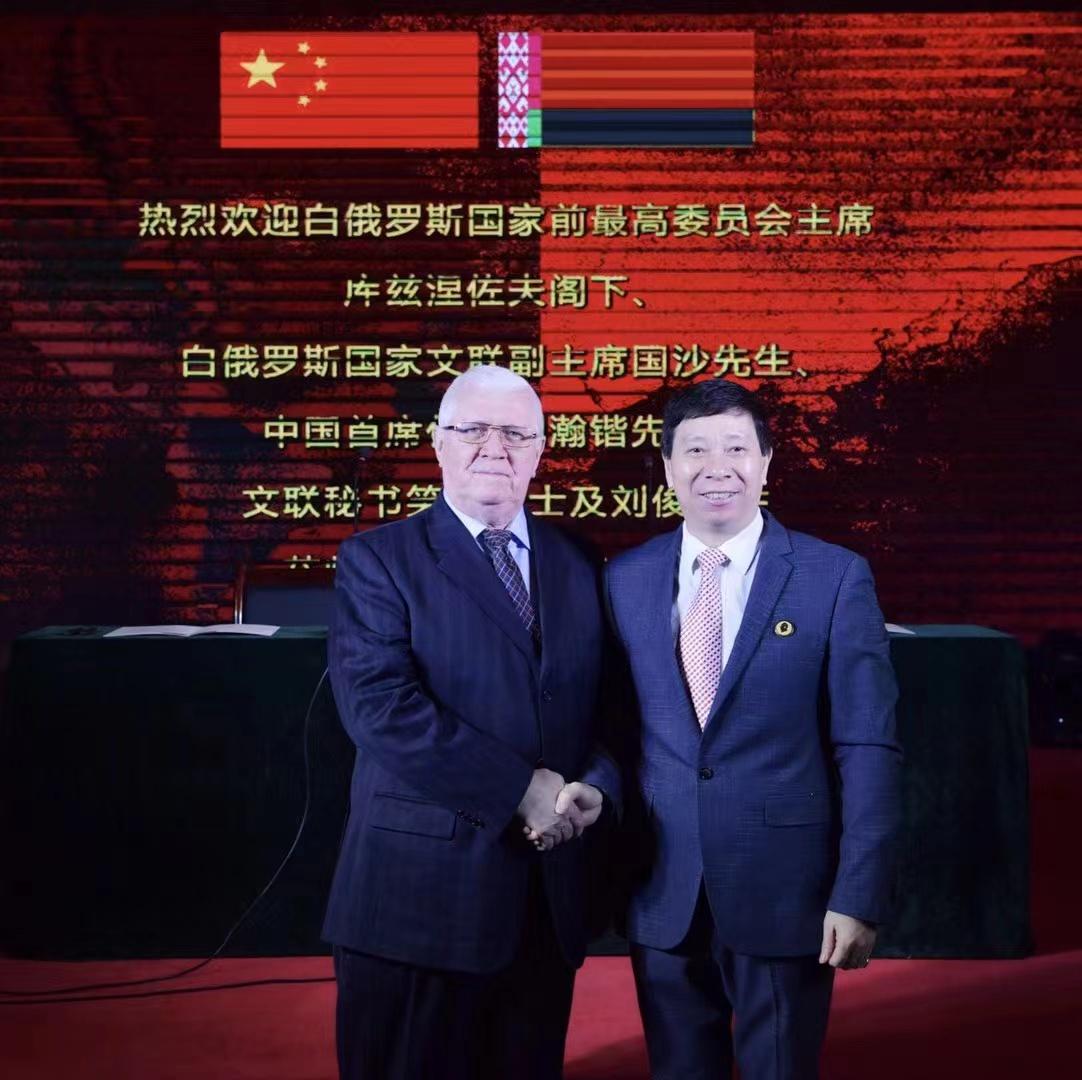 今年9月,正在白俄罗斯进行文化交流的白俄罗斯国家文联中国首席代表、国家美术馆驻华首席执行官刘瀚锴先生和白俄罗斯国立师范大学教授、国际合作处达米尔博士等一行,在白俄罗斯国家文联副主席国沙先生的陪同下,专程前往白俄罗斯国家前最高委员会主席库兹涅佐夫阁下府邸作客,双方围绕中白文化艺术交流和民间友好展开深度交谈,此次见面,为两国民间文化纽带再添温暖活力。