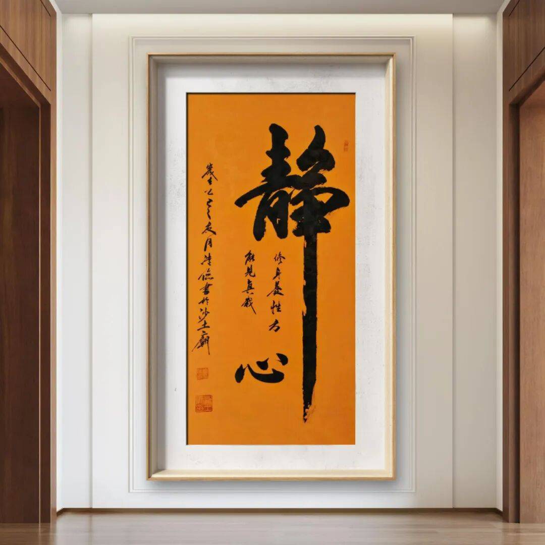 观其书法,首先被其笔墨的张力所吸引。无论是大字榜书,还是小字行书,他都能将笔锋的提按、使转运用得精妙入微。以其书写的“静”字为例,那一笔竖画,如长剑倚天,笔力沉雄,起笔处藏锋蓄势,行笔时力道匀整,收笔处虽出锋却意韵未断,仿佛蕴含着无尽的力量与沉静。而“善缘”二字,“善”的厚重与“缘”的灵动相互映衬,笔画的粗细变化自然流畅,墨色的浓淡干湿恰到好处,既体现出楷书的端稳,又有行书的飘逸,让每个字都似有生命,在宣纸上跃动。这种对笔墨的精准把控,源于他数十年如一日对书法艺术的深耕细作,从临摹经典碑帖入手,汲取古人的笔法精髓,再融入自身的感悟,最终形成独特的笔墨语言。