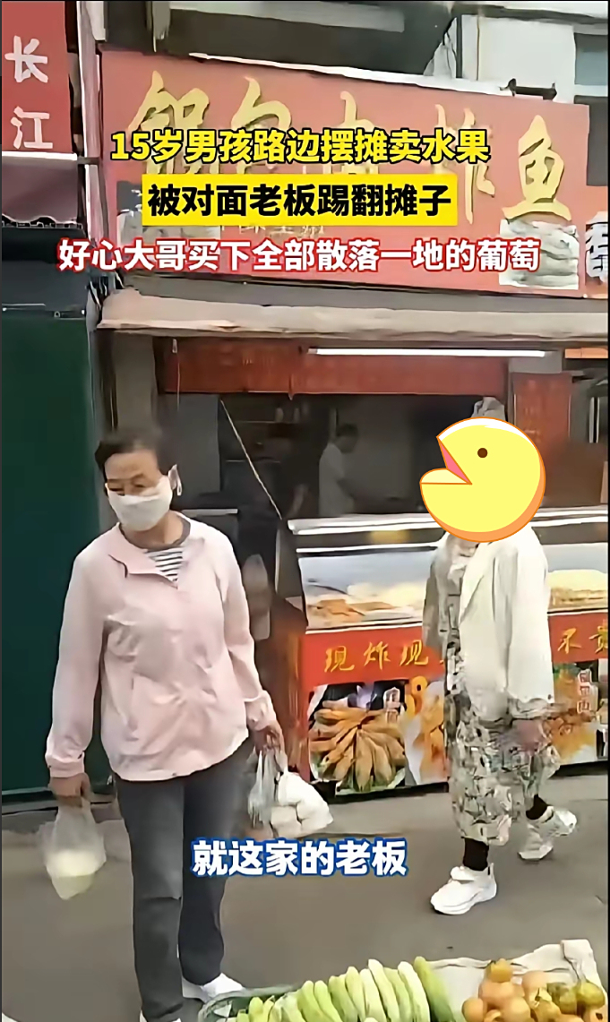 有网友说,凡事都要讲良心!对面老板(对面)掀一个15岁小孩的摊子,良心被狗咬了吗?这样的老板能允许客人占他一点小便宜?