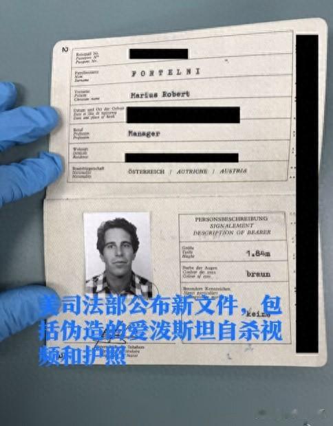 本次发布还包括FBI特工2019年在爱泼斯坦曼哈顿别墅保险箱中发现的一本过期奥地利护照照片。护照上贴有爱泼斯坦的照片,但姓名是房地产开发商马里乌斯·福特尔尼(Marius Fortelni),居住地列为沙特阿拉伯。福特尔尼未立即回应评论请求。