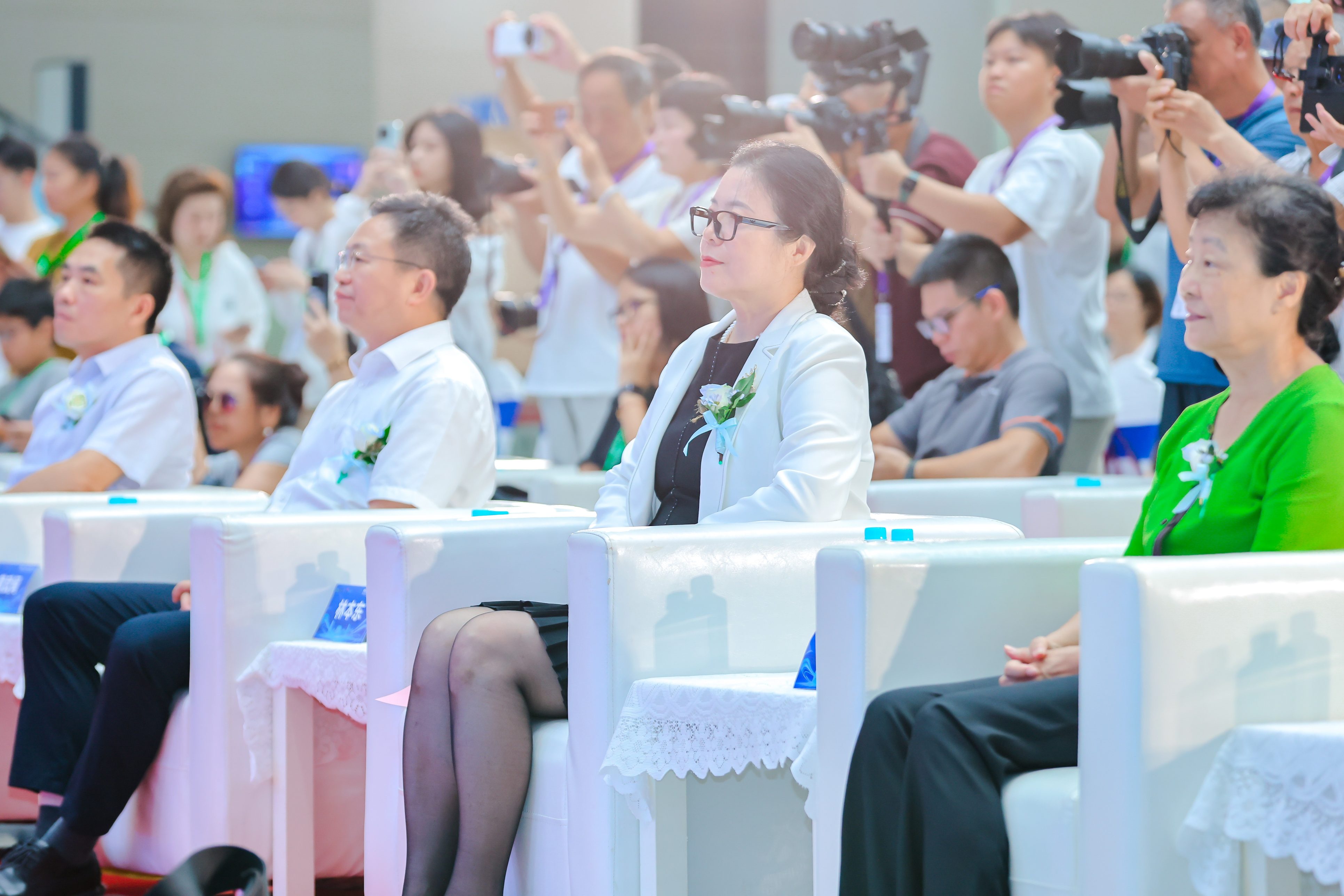 开幕式现场高朋满座,气氛热烈。中国汽车工业协会副秘书长柳燕,福建省商务厅副厅长林本东,福州市商务局副局长黄武闽,原联合国工发组织福建项目办总协调员贺汪洋,福州广播电视台党委委员、总会计师、福州广电传媒集团公司监事会主席黄一峰,福建省东南竞争力研究院副院长、第46届福州国际车展组委会秘书长徐希真,福州会展会务集团总经理郑挺伟,福州天飚广告有限公司董事长、福建省机电商会展务部总经理郭风等领导与嘉宾共同出席开幕仪式,见证这一重要时刻。
