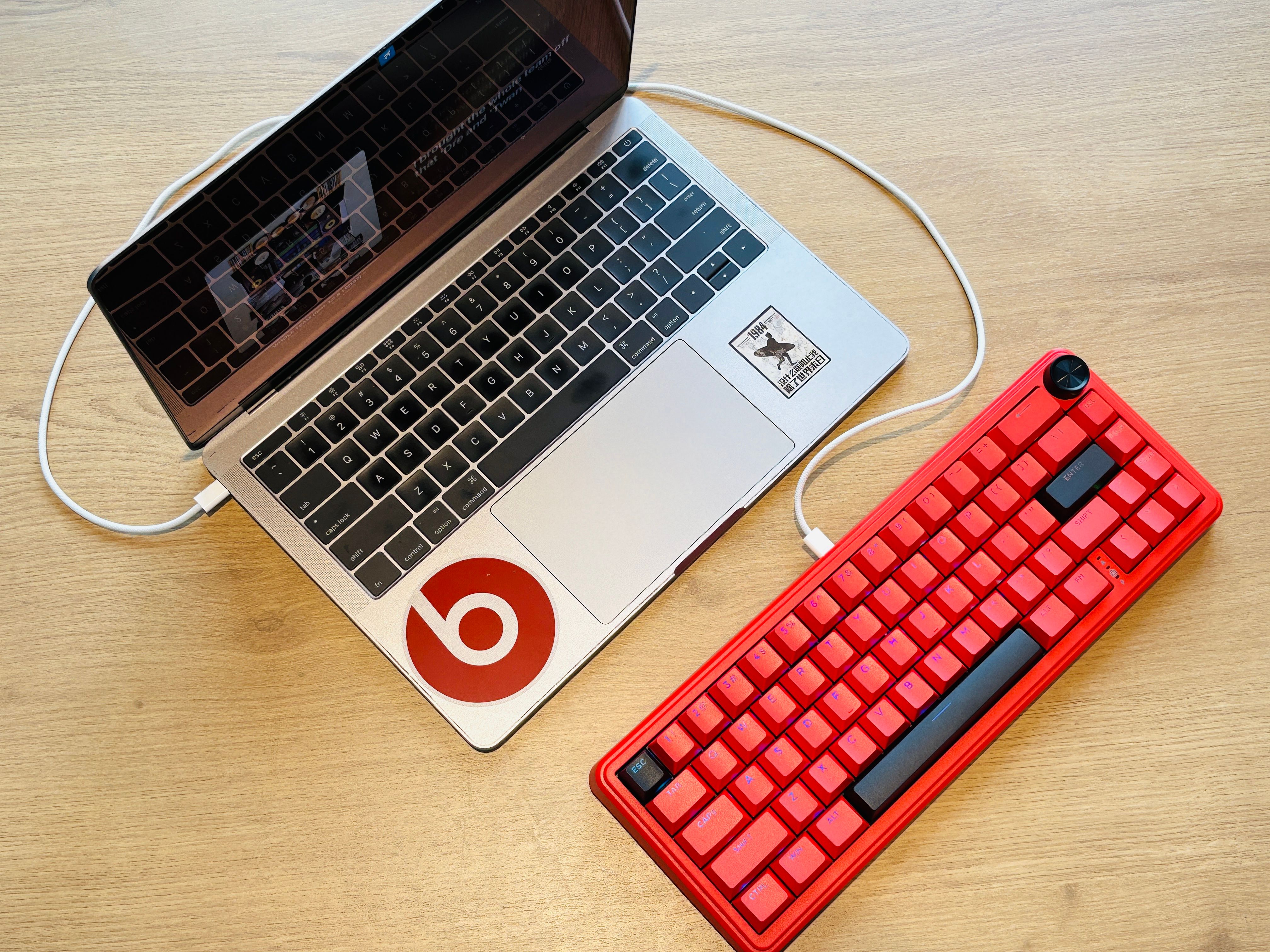 顺便提一嘴,阿斯盾Zeus68是一款单模有线键盘,简单一点说就是需要一根电源线连接电脑才能使用。随便拿一根手机充电线都可以连接,使用时无任何影响,而且有线模式比蓝牙要稳定得多,这点在玩游戏时最明显。