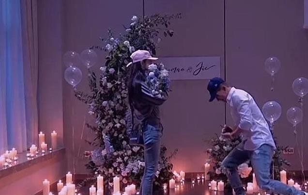 2018年,何捷精心策划了一场求婚仪式,将这段低调的爱情推向了高潮。