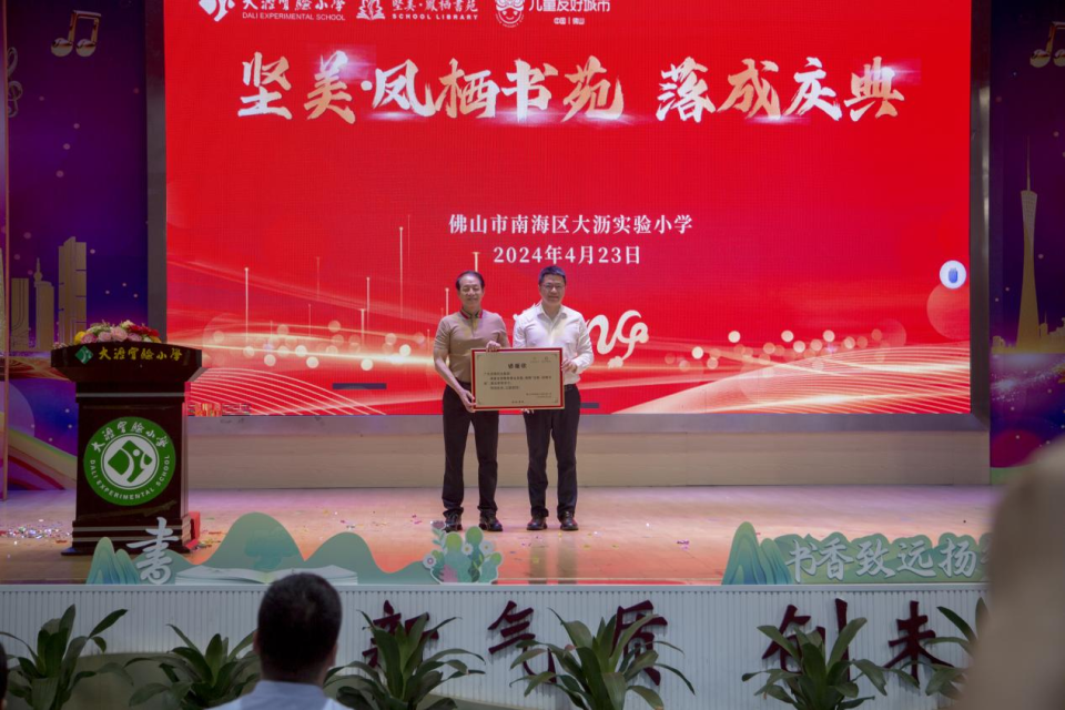 典故,象征着学校幸福祥瑞,贤才辈出,承载着企业的社会责任与担当,彰显了企业家的最美精神与最美风尚。大沥实验小学小学党委书记、校长李佩球表示“书苑是学校最美的风景。”