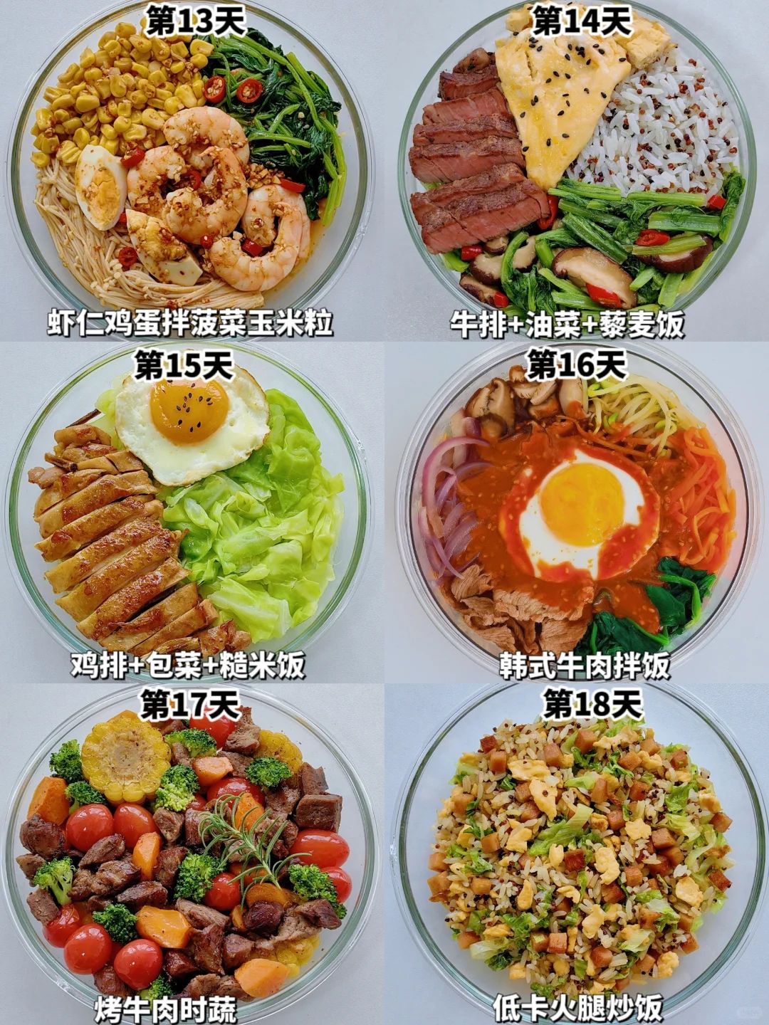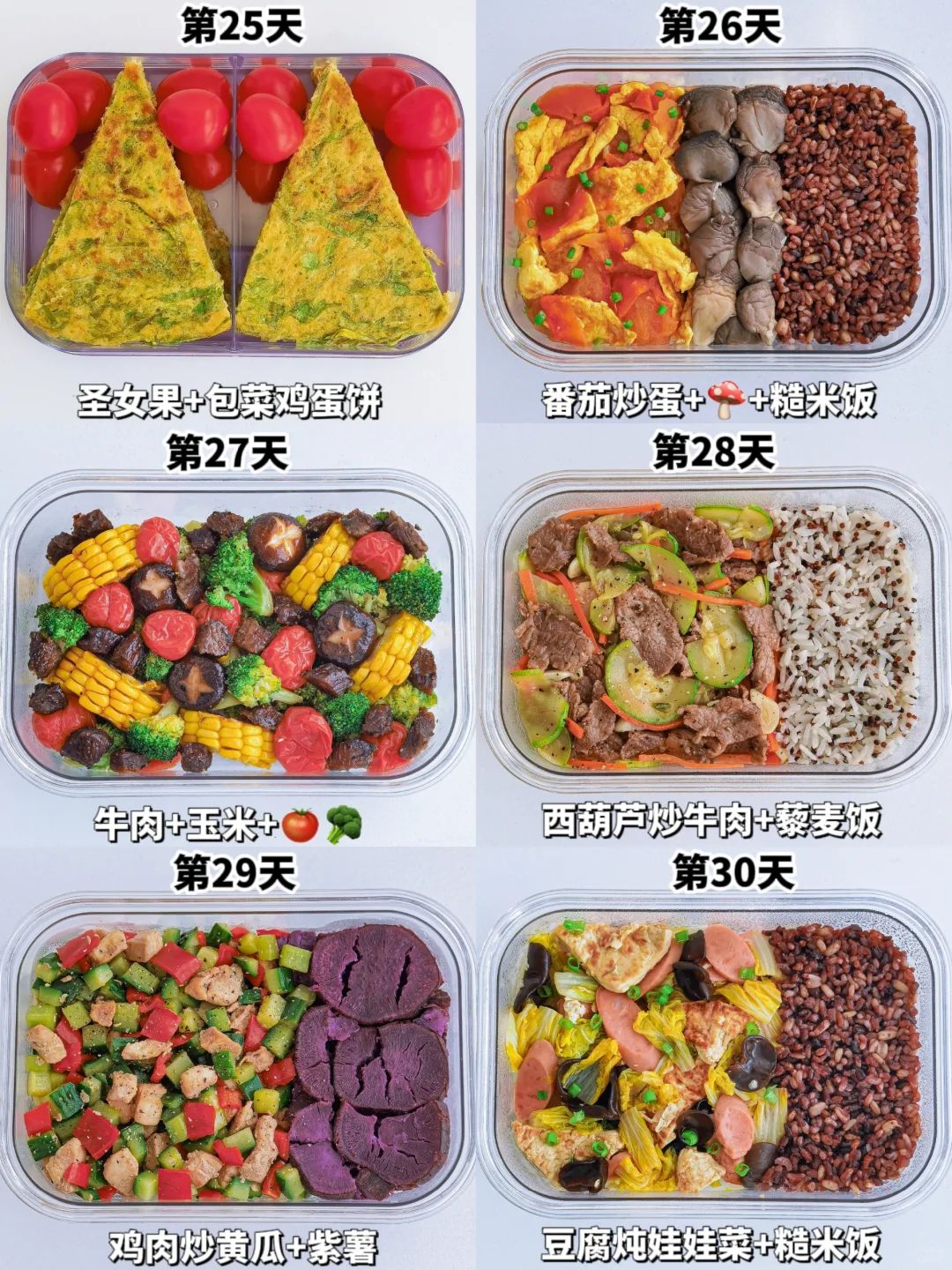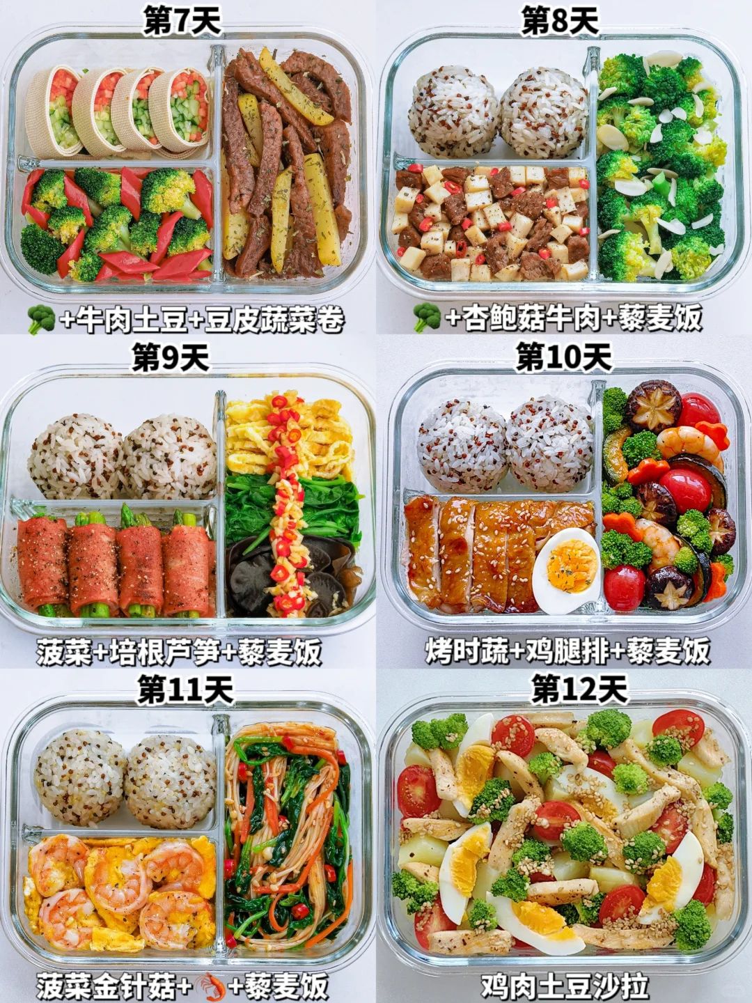 1️⃣每份的热量都控制在450kcal以内,少油少盐清炒;