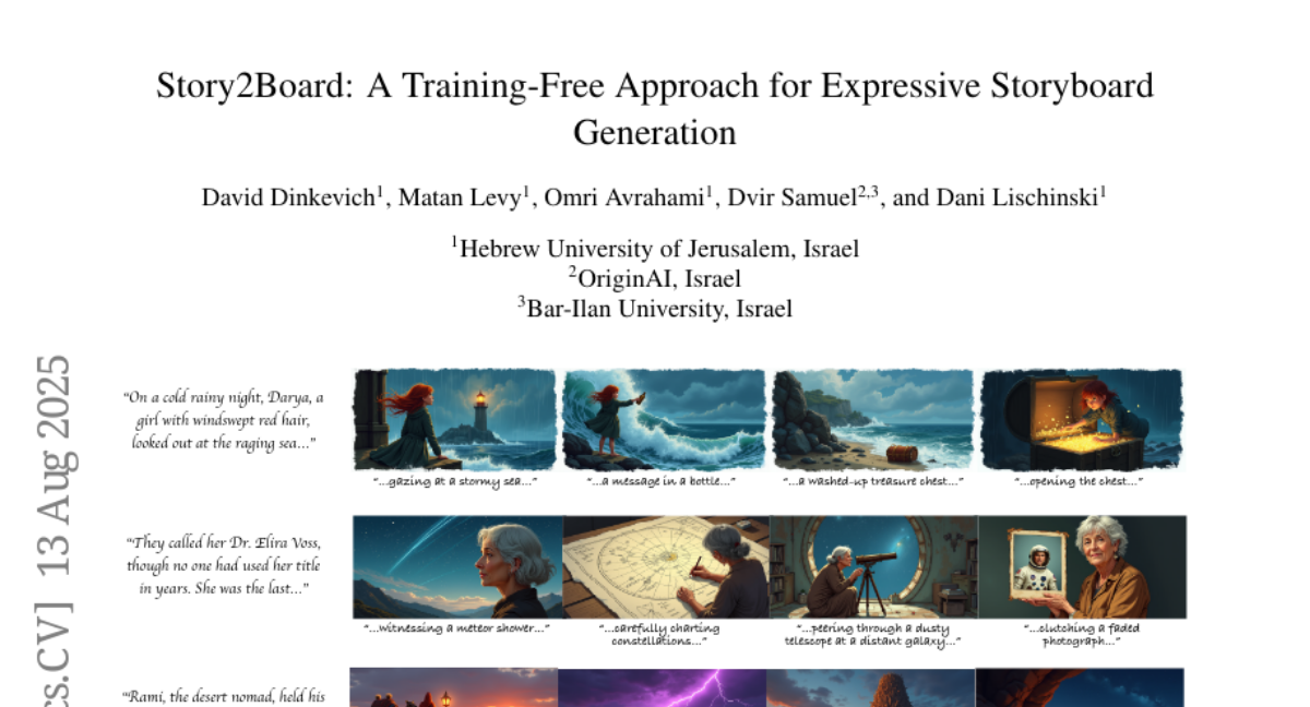 这项由希伯来大学的David Dinkevich、Matan Levy、Omri Avrahami、Dvir Samuel和Dani Lischinski等研究者开发的Story2Board系统于2025年8月发表在计算机视觉领域的重要期刊上,论文编号为arXiv:2508.09983v1。有兴趣深入了解技术细节的读者可以通过这个编号查询完整论文。