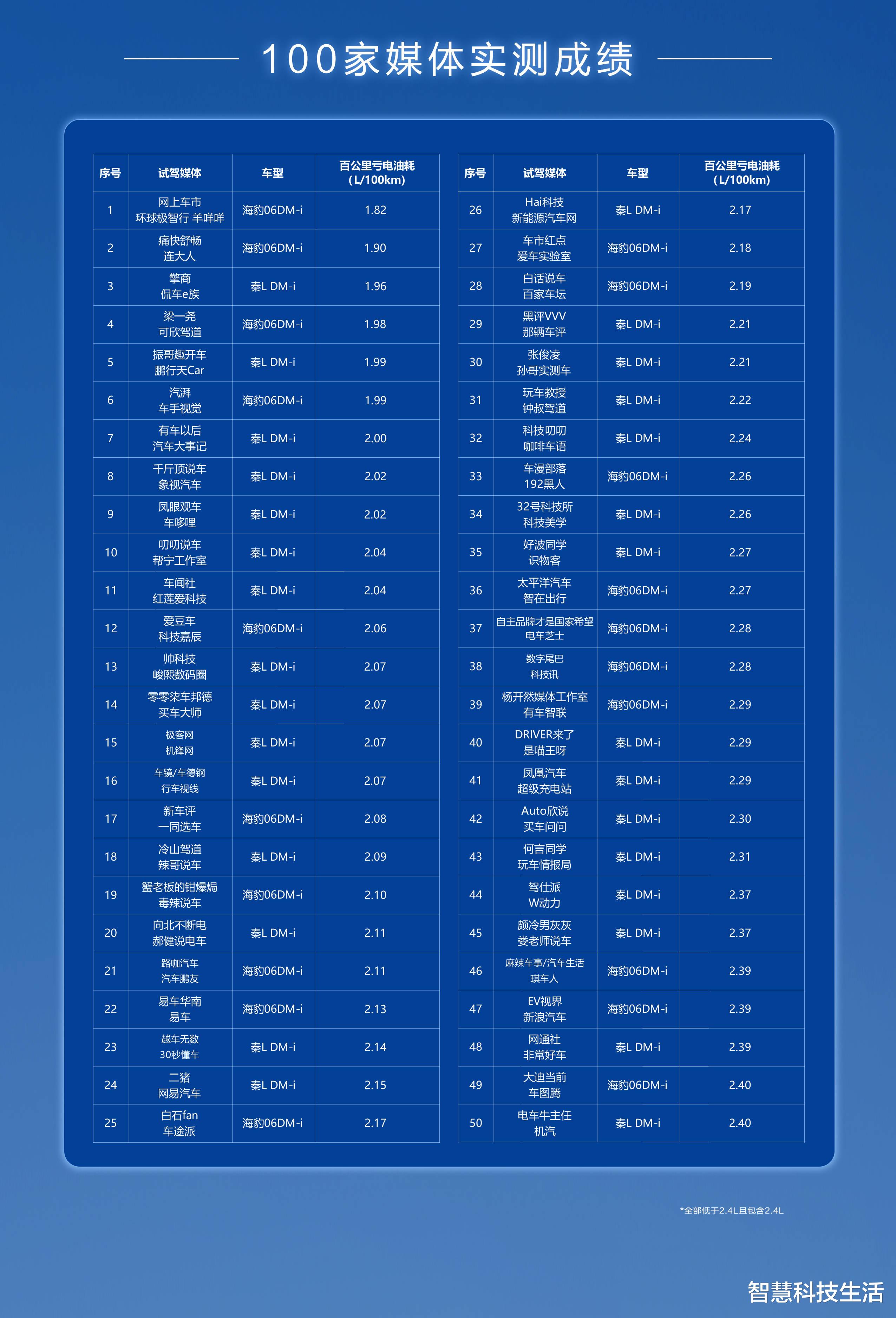 值得一提的是,百公里亏电油耗降低至2.6L,这不是偶然现象,更是通过了百家媒体的实测体验,甚至百公里实测结果亏电油耗更是低于2.4L,看来比亚迪这一波还是很谦虚了的。