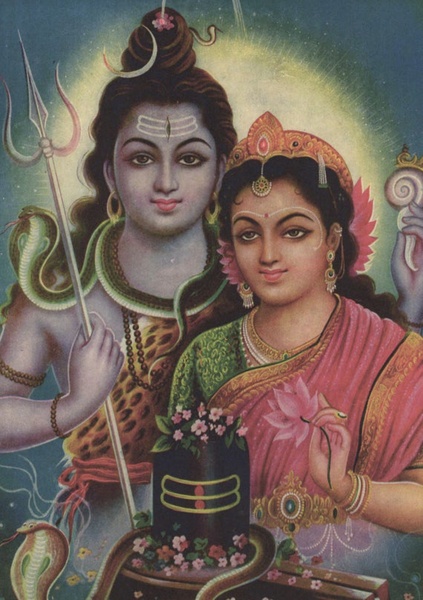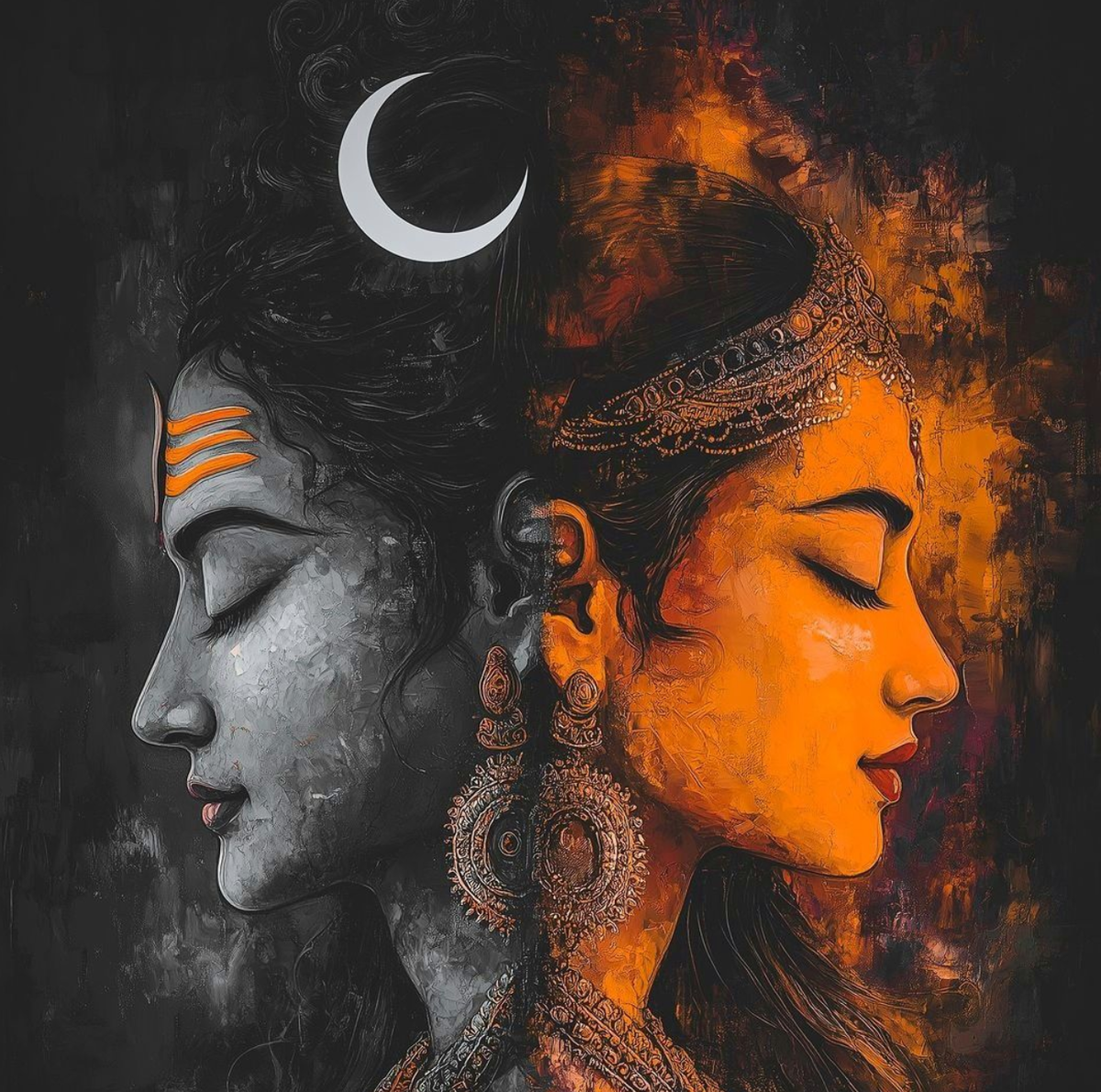 随后,她透过同样的筛网望向丈夫的脸庞——如同凝望月光的倒影,湿婆神性能量的化身。
