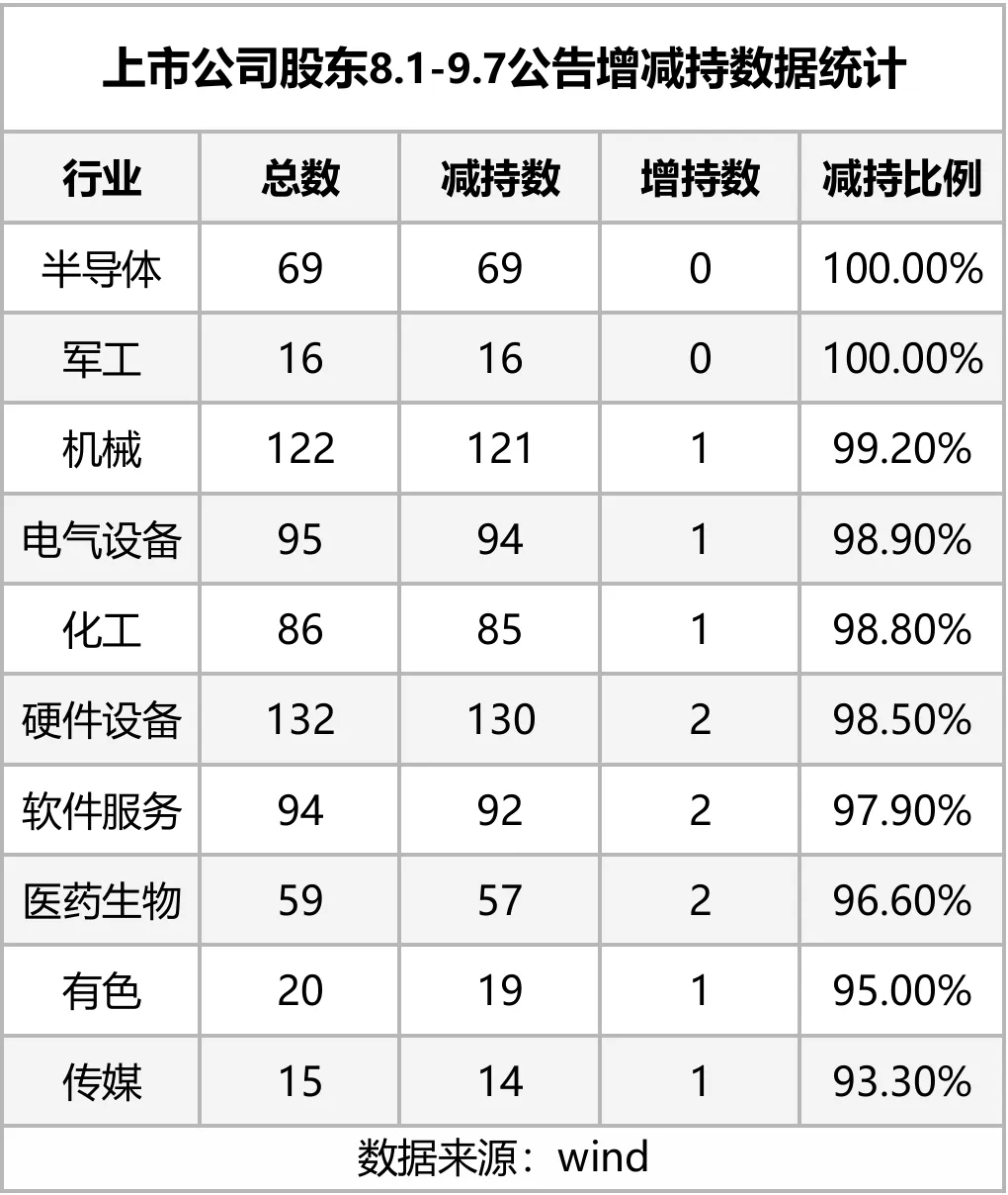 借这次的同花顺减持,我统计了近期上市公司的行为,倒发现背后只是8、9月份减持大军的冰山一角,