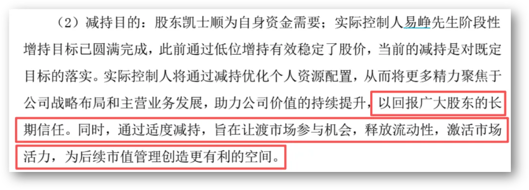 说实话我对这段话并不反感,因为比起那些只会提“因个人资金需求减持”的实控人,这个起码还告诉你原因了,