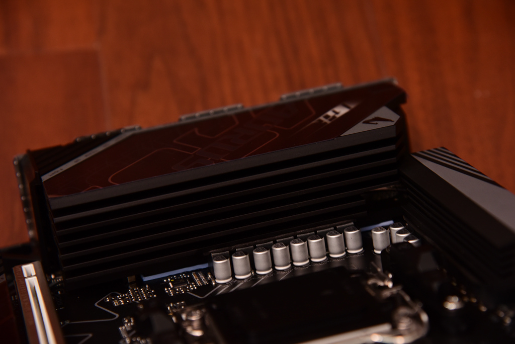 散热方面:整个主板的散热装甲基本上实现了全覆盖。主板IO位置和供电部分覆盖了大面积散热片,内置了热管强化散热,高性能导热垫可以及时将热量传递出来。2个M.2固态硬盘散热片采用了一体式可拆卸散热片设计,而南桥芯片的散热也采用了大面积设计,增强了散热效果。