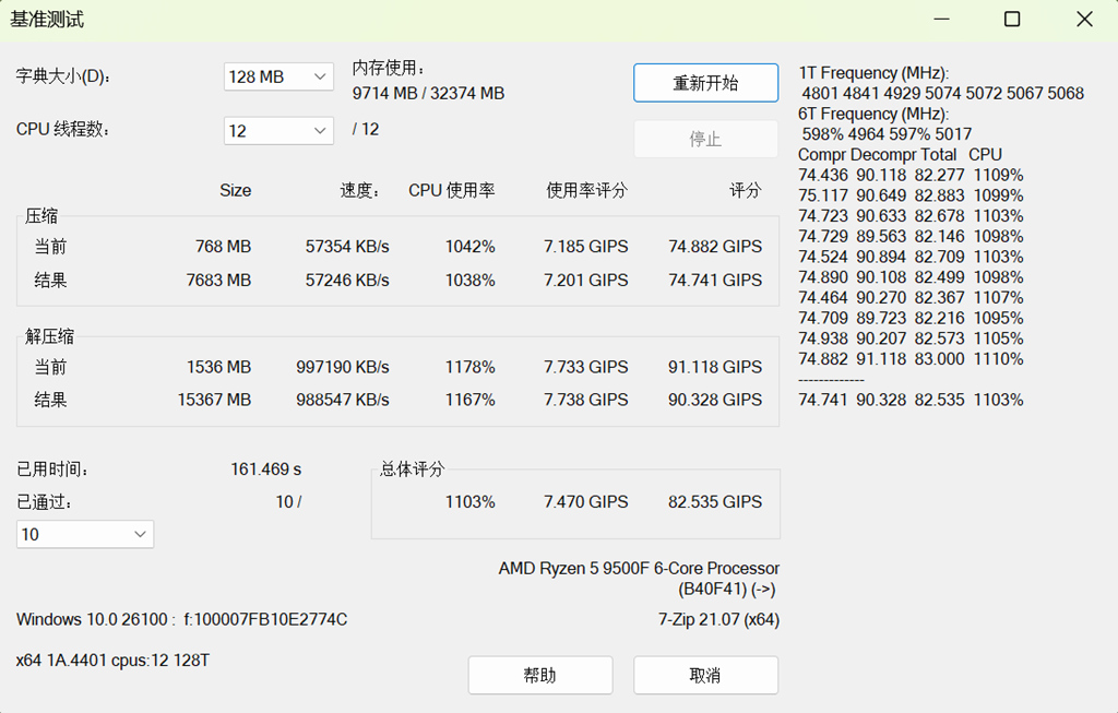 通过测试可见,9500F的单核性能效能还是不错的,从各项测试分数的结果来看,优势还是比较明显的。