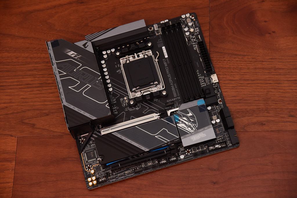 主板使用了技嘉B850M AORUS PRO WIFI7竞技雕主板,这款主板主打MATX规格下的强散热和电竞风格。