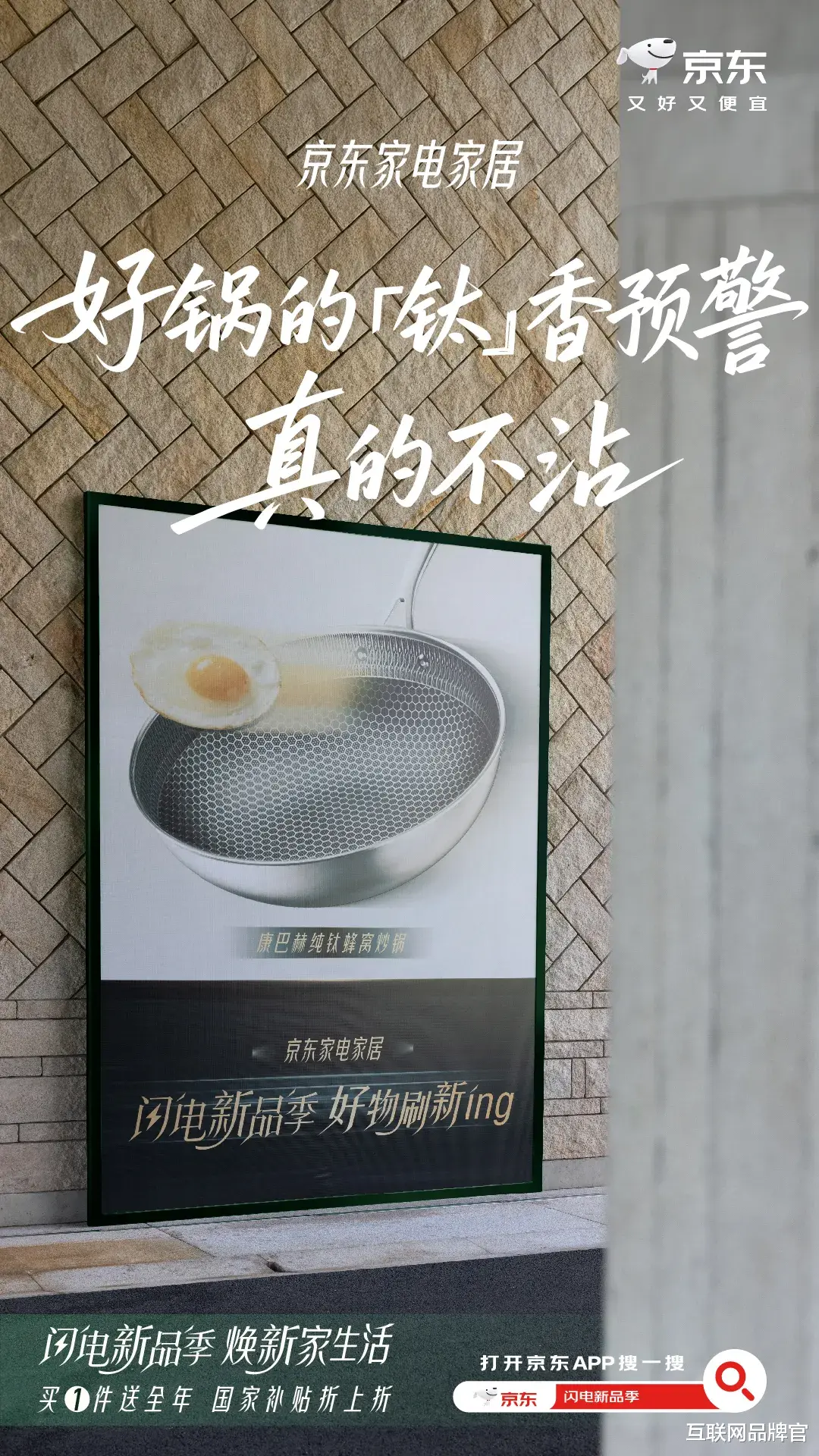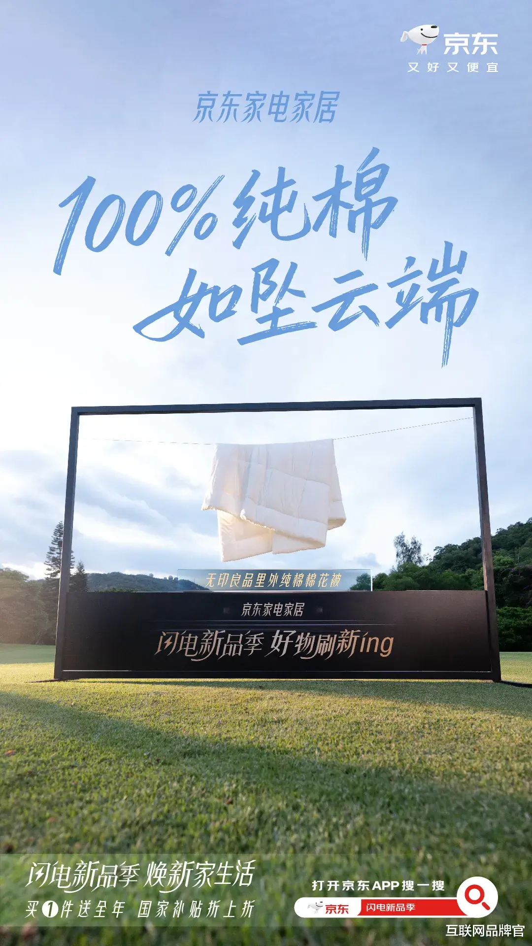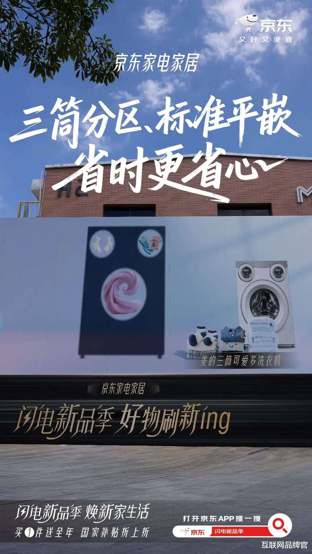 京东不按照套路出牌,没有平铺直陈述产品的卖点,或者陈列各种枯燥无趣的参数,而是借助天然的户外场景爆改广告,强化受众对家电家居功能的好感。从产品营销角度来看,这利于京东讲透每件趋势好物的卖点,深化大家对京东闪电新品的记忆点;从销售转化来看,京东可以进一步撬动大众的消费欲望,引导他们上京东打卡更多生活好物件,推动话题流量到产品销售的高效转化。