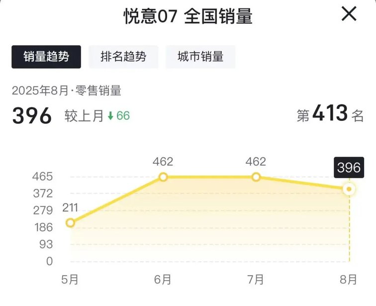 并非所有自主品牌都能分享市场增长红利。一汽奔腾旗下两款新车悦意 03 和悦意 07 8 月销量分别为 3,063 辆和 396 辆,其中悦意 03 较 6 月的 3,358 辆出现小幅下滑,未能延续增长势头。