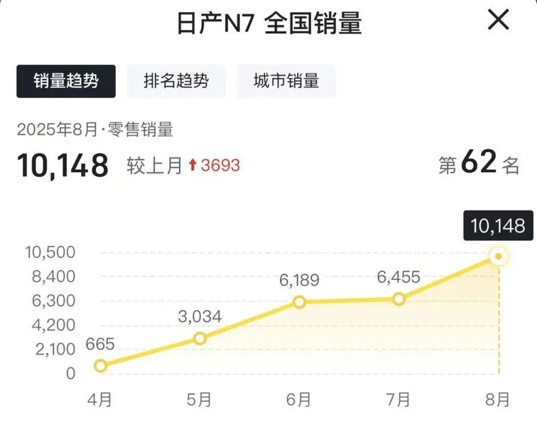 合资新能源阵营在 8 月呈现出明显的两极分化。东风日产 N7 成为最大赢家,8 月销量达到 10,148 辆,环比增长 57%,不仅创下合资纯电车型首个单月破万纪录,更以累计 26,491 辆的交付量展现出持续攀升的势头。这款定价 11.99-14.49 万元的纯电轿车,成功打破了合资新能源车型的销量魔咒。