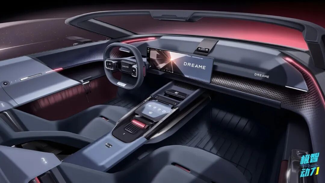 更引人注目的是,追觅概念车设计极具颠覆性:“无序对开”车门、隐藏式双B柱、流线型车身搭配碳纤维固定尾翼,甚至宣称要打造“世界上速度最快的车”。从已发布的官图来看,整车造型充满未来感,封闭式前脸、修长头灯、大尺寸导流槽以及红色卡钳黑色轮辋,处处彰显超跑基因。内饰渲染图则显示其采用四座布局、椭圆形方向盘、怀挡设计以及一体式大屏,科技感与豪华感并重。