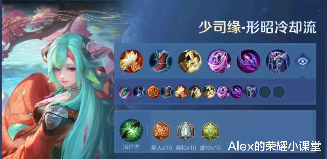 少司缘的回血和伤害吃法术攻击加成,而打控制又需要肉身进场、并不是那种一直躲在后排的辅助,因此推荐使用半肉半法功能型出装。