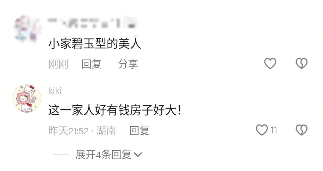 李妈妈身着蓝色T恤和白色长裤,染着时尚的咖色头发,妆容精致,看起来年轻又优雅,被网友称赞为“小家碧玉型”的美人。母女俩长相相似,李妈妈虽然个子不高,但气质出众,显得贵气十足。