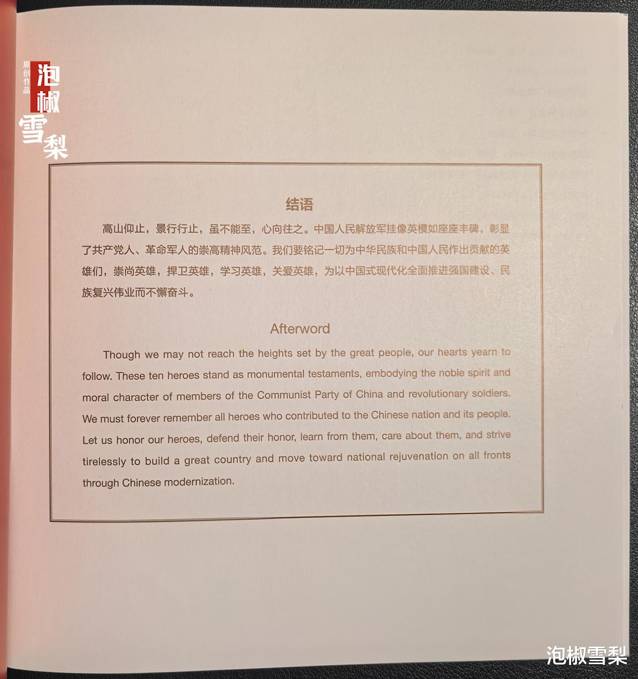 英模图后有一张白底金字的“结语”,也是中英文的形式。