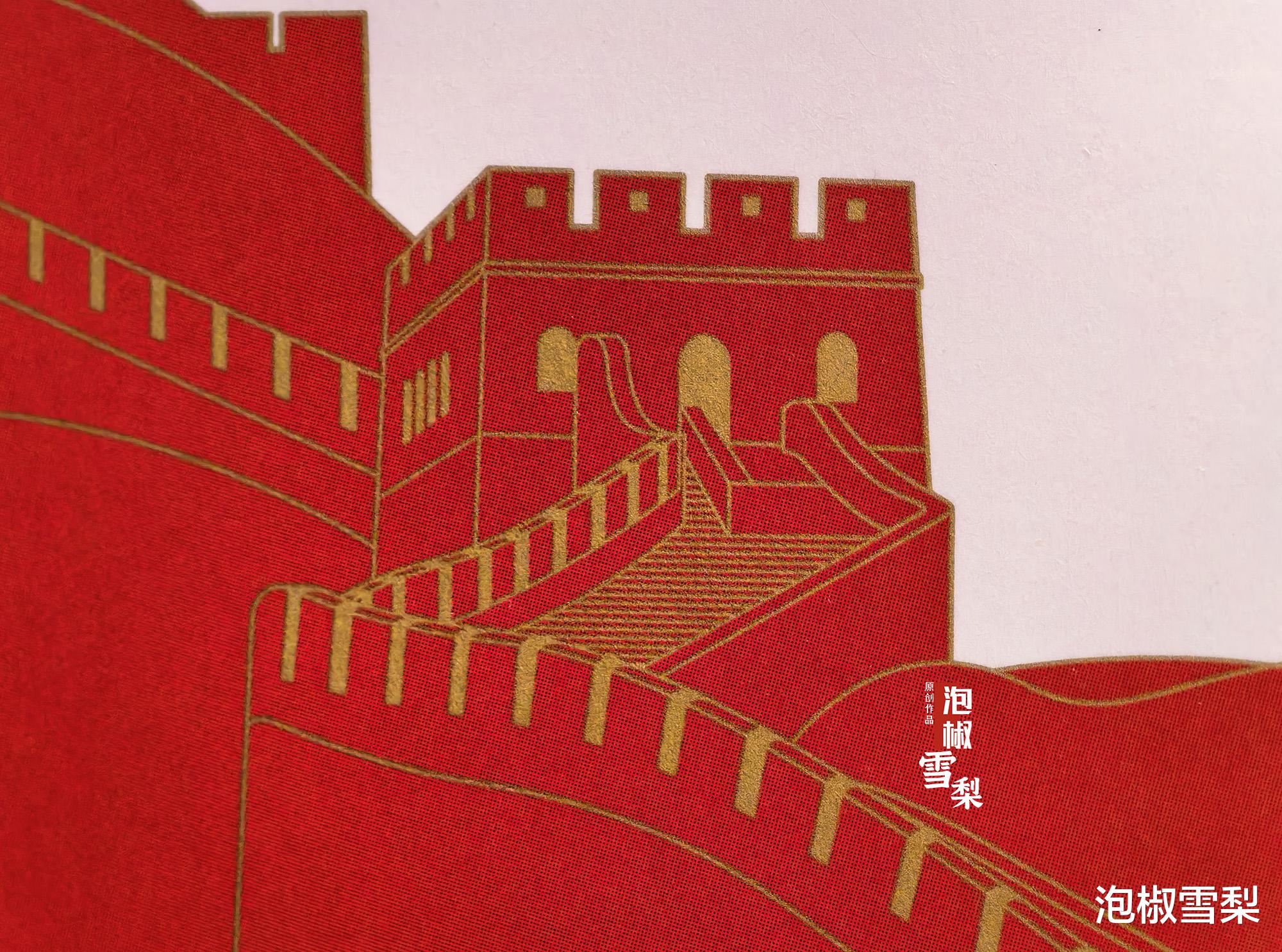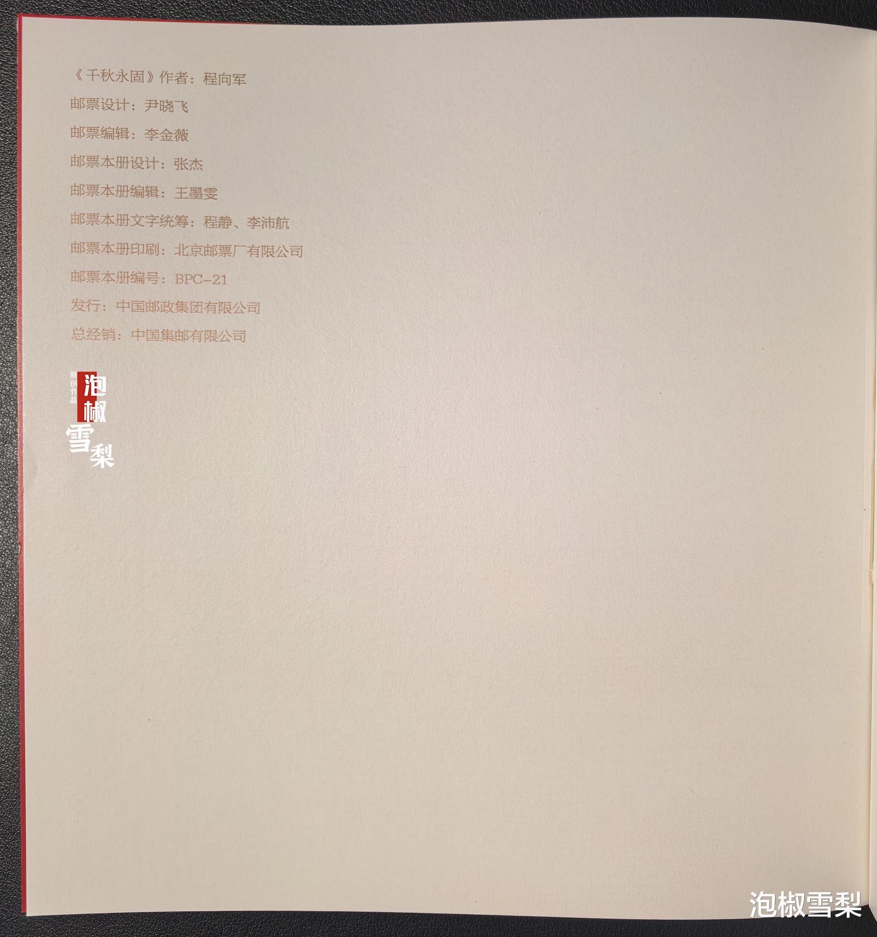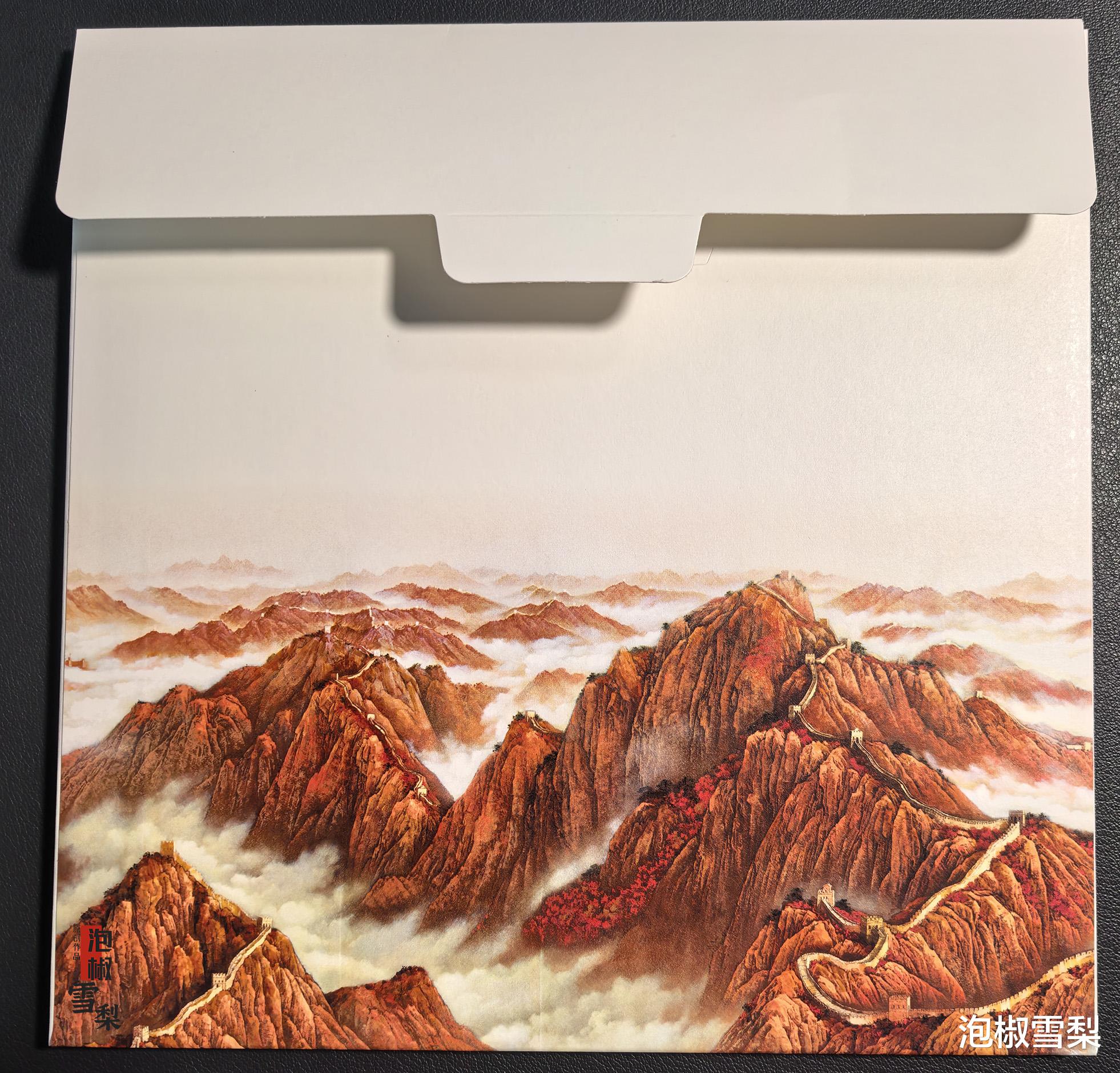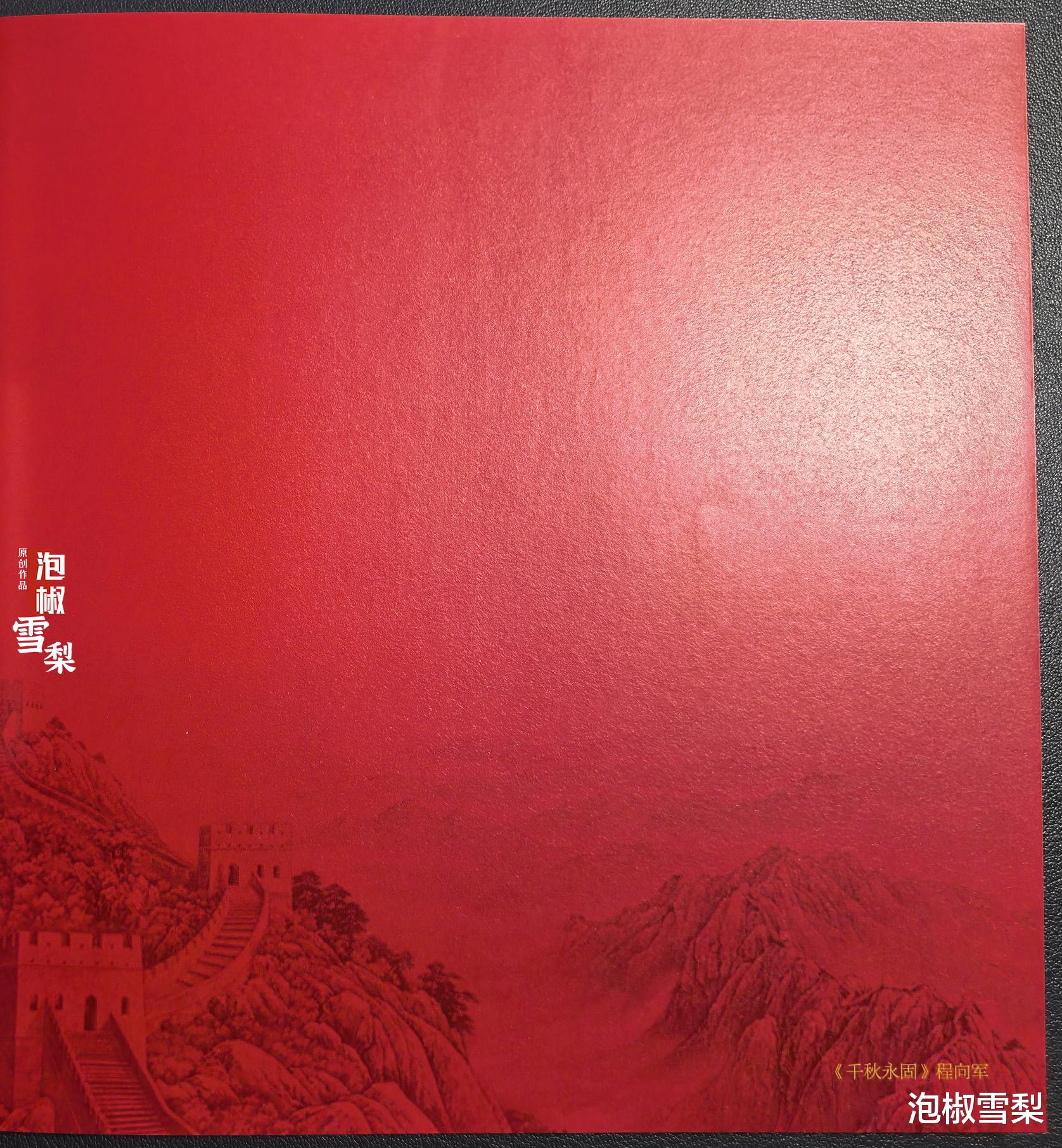 邮票之后为红底长城绘画页,原图为程向军的《千秋永固》漆壁画。
