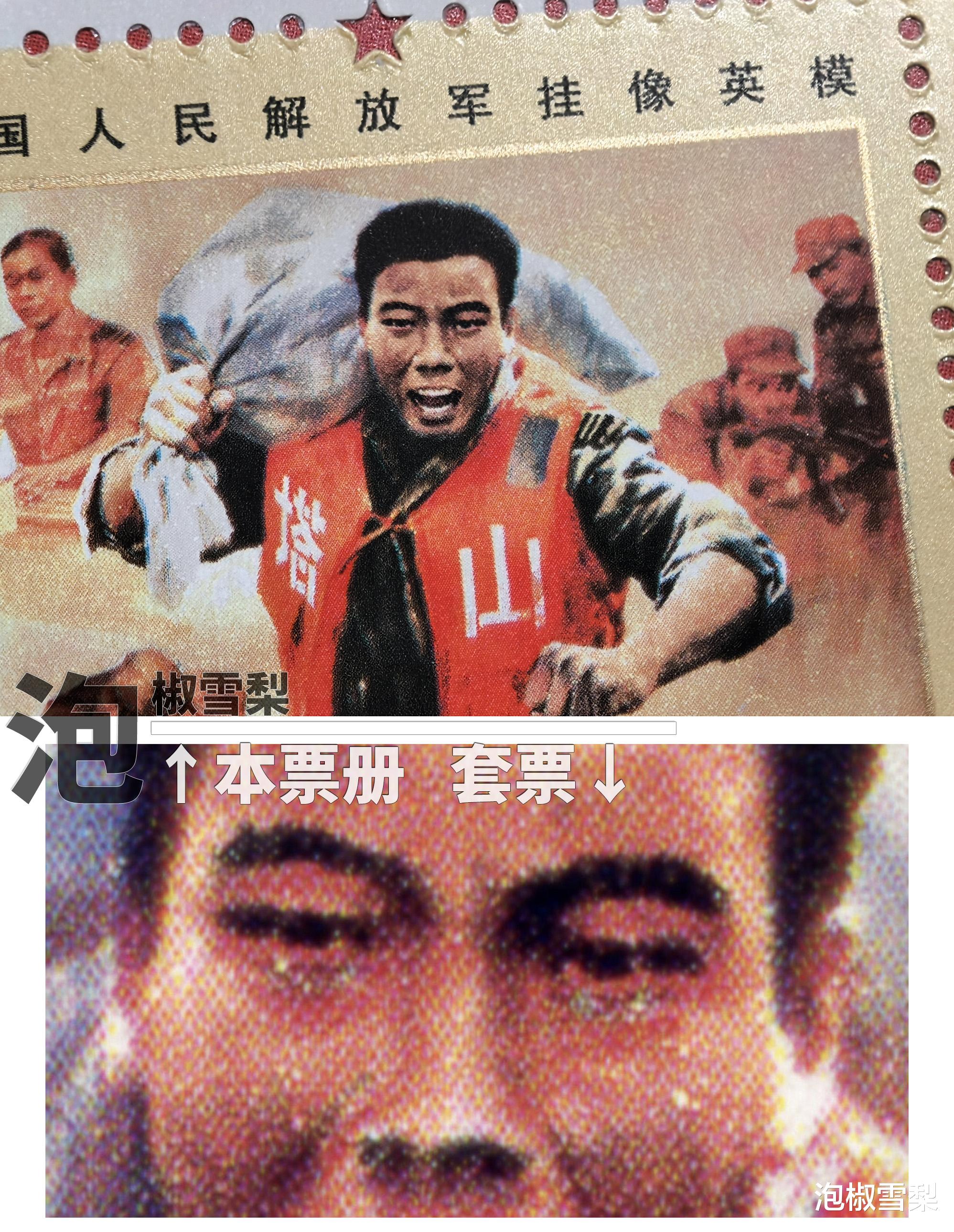第七枚《李向群》脸部放大后没有出现套票中的“四只眼”现象,准确度比套票好一些,可能是原画质感的问题,邮票图案还是存在一些模糊的感觉。
