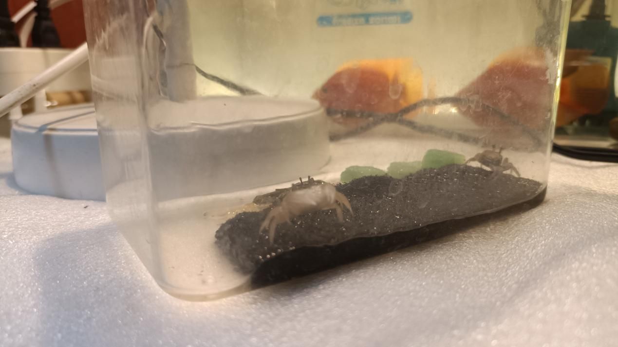 大家好,我是泉世界,下面给大家展示一下我刚在马爸爸家花3分钱薅到家的三只小辣椒蟹。今天的辣椒蟹在吐泡泡。大家见过辣椒蟹吐泡泡吗?