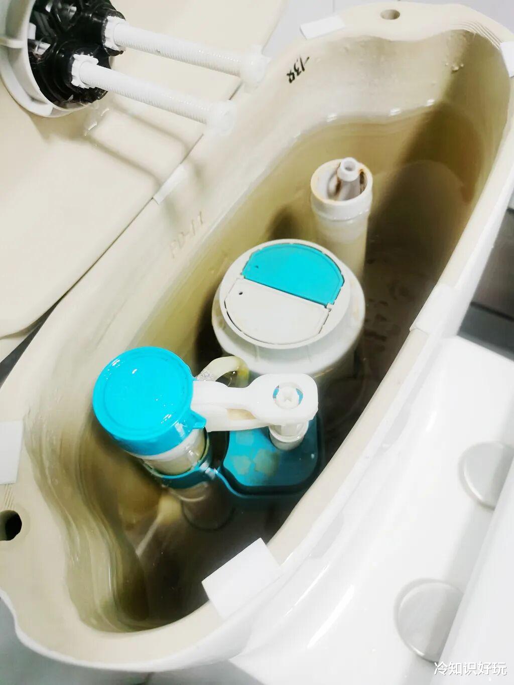 可以打开水箱盖,按下小按钮观察:正常情况下,水位会下降到“半冲刻度线”,如果水位降得太少或太多,调整一下浮球高度就能解决。