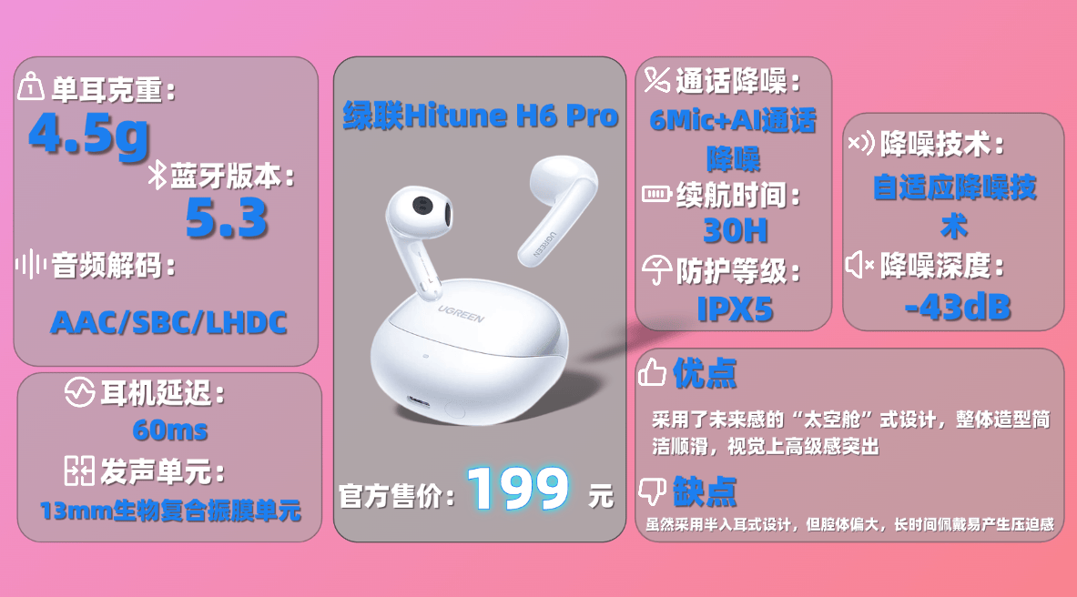 10、绿 联H itune H6 Pro蓝牙耳机