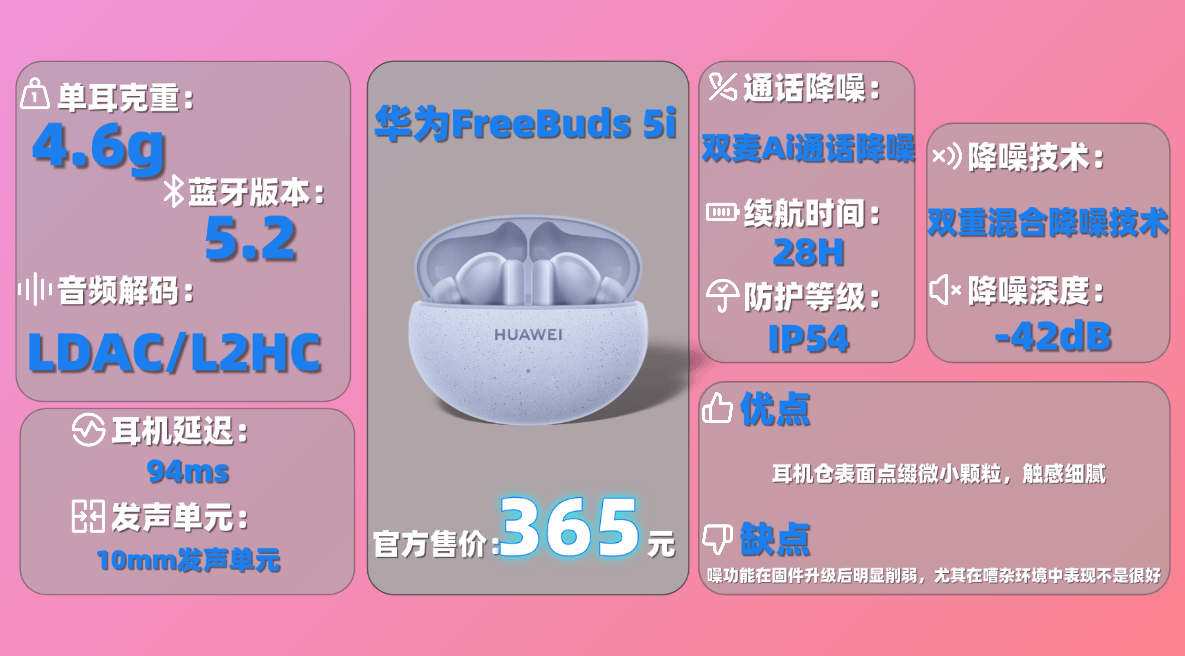 6、华 为F ree Buds 5i蓝牙耳机