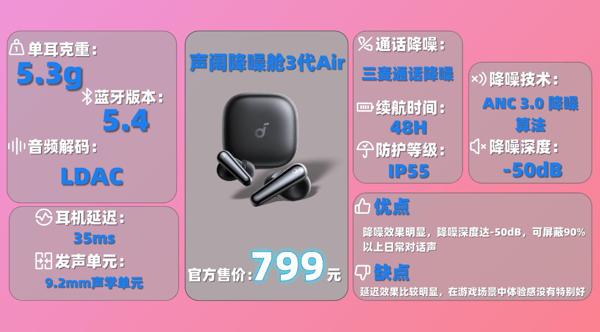 4、声 阔降 噪舱3代Air蓝牙耳机