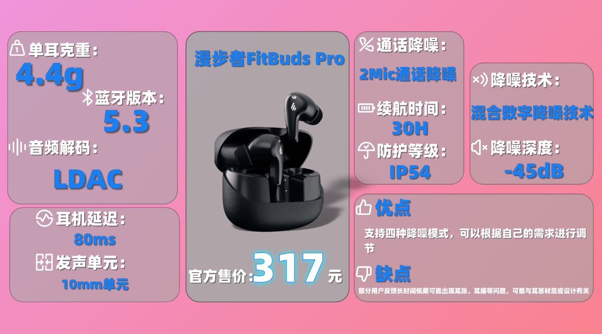 2、漫 步者F itBuds Pro蓝牙耳机
