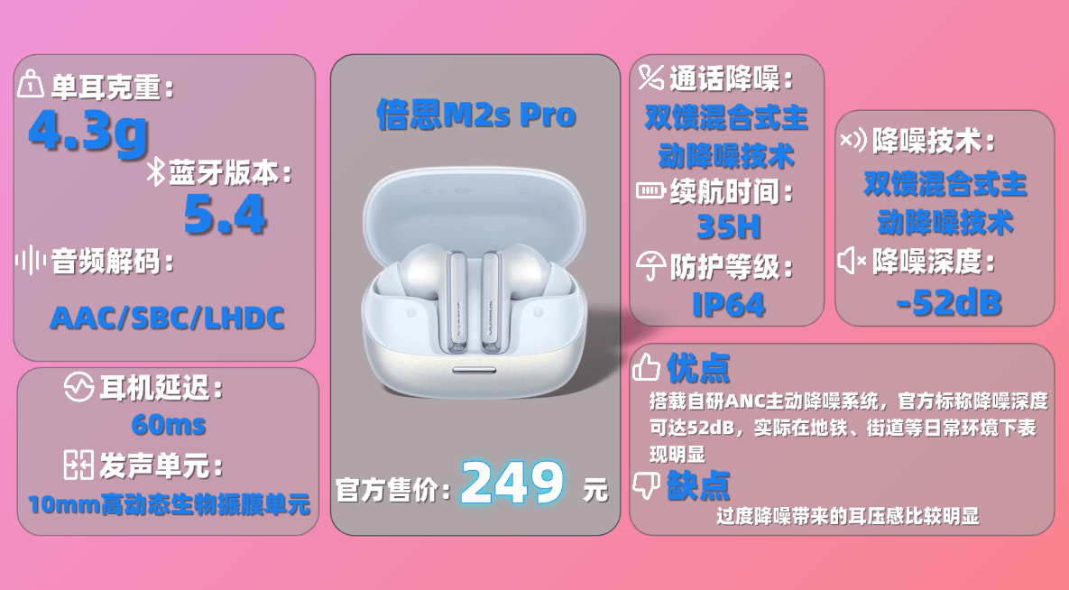 9、倍 思M 2s Pro蓝牙耳机