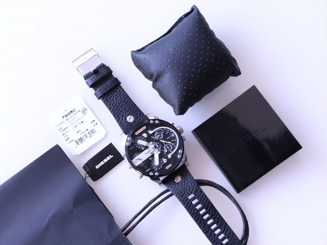 Diesel疾风猎鹰手表的配件算不上丰富,但也比较齐全,表枕、多语言说明书、价格吊牌和产品合格证,另外还有个礼品手拎袋。