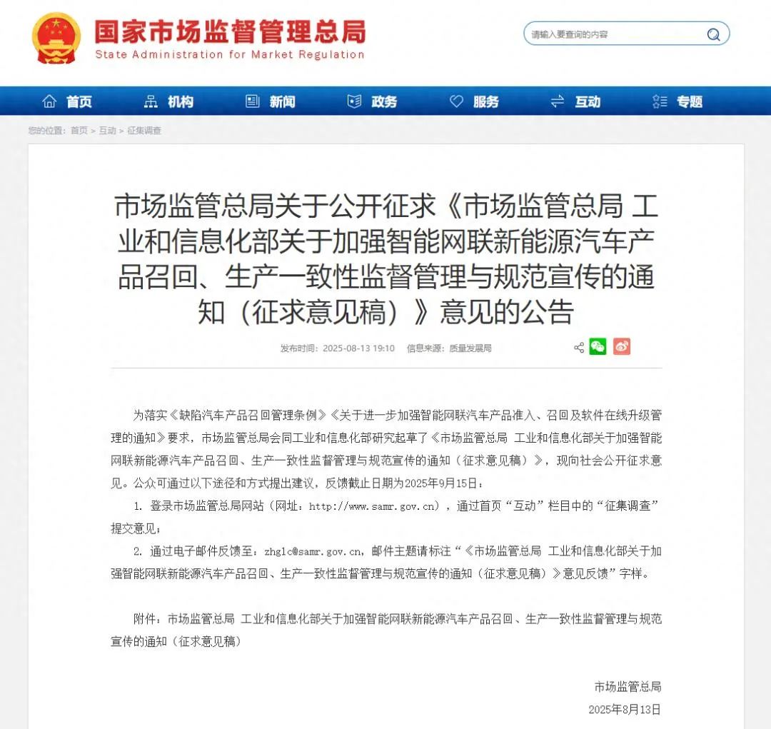 最近,智能驾驶行业迎来了一记“重拳”。8月13日,国家市场监督管理总局和工业和信息化部联合发布了一份《关于加强智能网联新能源汽车产品召回、生产一致性监督管理与规范宣传的通知(征求意见稿)》,直指行业乱象,堪称“史上最严监管”。