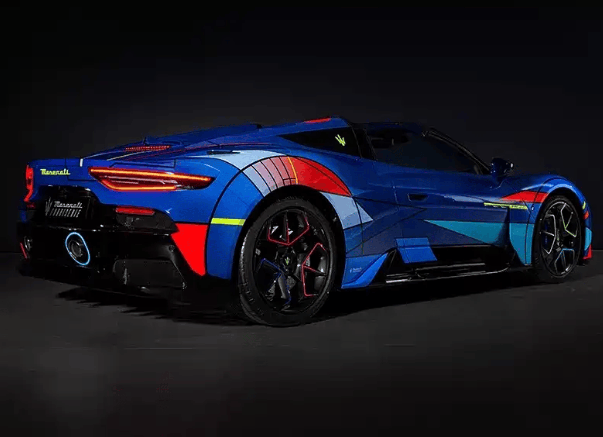 玛莎拉蒂MC20“Opera d’Arte”敞篷特别版基于玛莎拉蒂MC20敞篷版打造。整车在车身的涂装上进行了个性化装扮,设计上汲取抽象艺术的先锋语言,以突破性视角重构超跑美学表达。整车的设计制造均诞生于玛莎拉蒂位于摩德纳西罗梅诺蒂大街(Viale Ciro Menotti)的工厂,这座承载品牌历史的制造基地,近期已完成全面焕新。整体来看,新车的车身通体采用全手工涂装工艺,并经由定制化的设计,使用了十五种色彩的排列组合,并经过了数千小时的绘制,其车身上每一抹色调——从定制酸橙黄、暖意橙红到跃动电光绿——皆经专门调制,力求在细节中唤醒独特情感共鸣。整车依旧采用可折叠式的玻璃硬顶敞篷机构,在时速50km/h内,车顶完成开启或闭合仅需12秒,整车相比硬顶版车型的车身重量仅增加了65公斤。