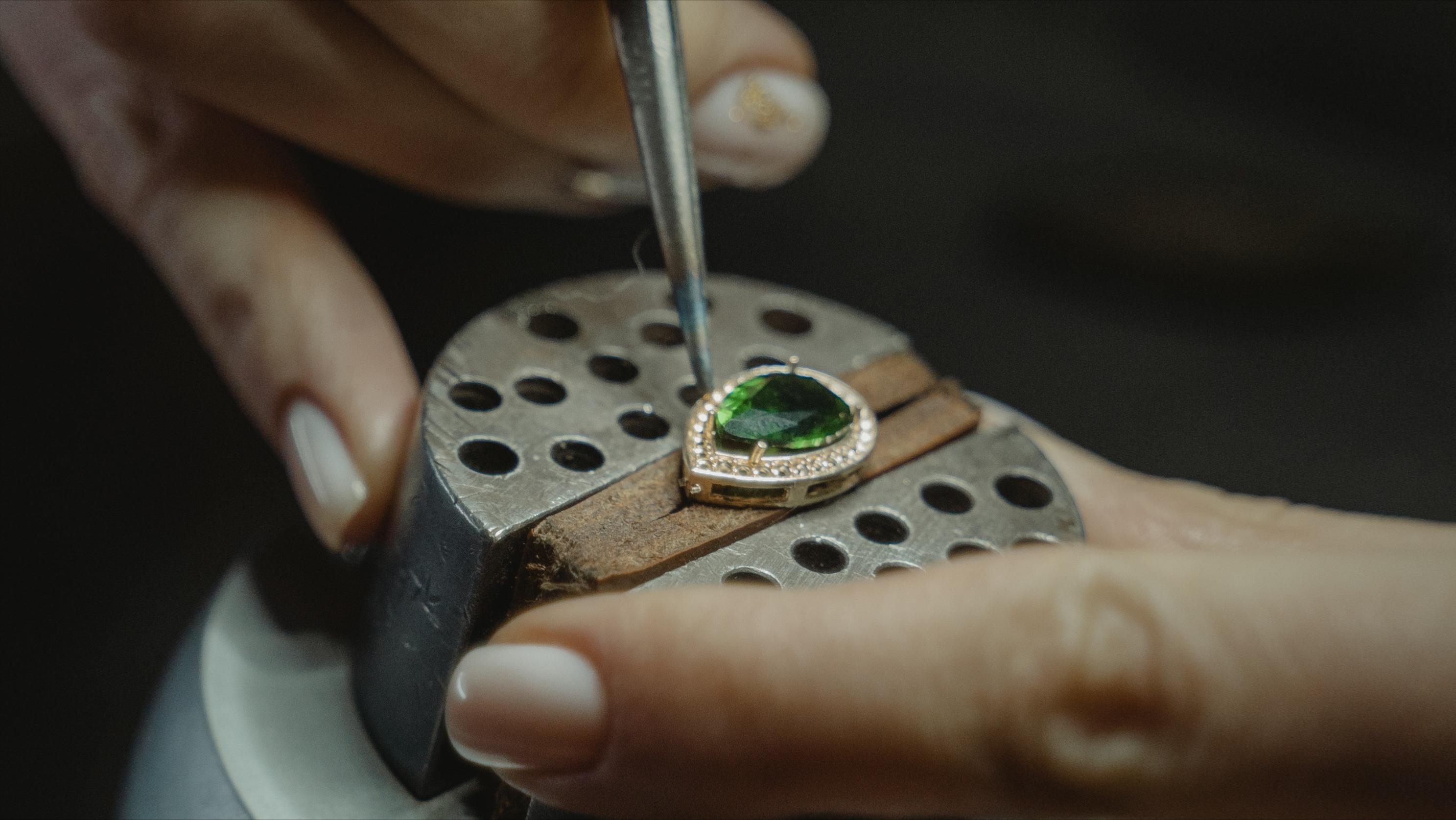 彩宝定制的设计要 “兼顾衬色与护石”。一方面要通过金属颜色 “提亮” 彩宝 —— 比如玫瑰金衬红宝石更显艳、白金衬蓝宝石更显深邃;另一方面要考虑彩宝硬度(比如祖母绿硬度 7.5-8,比钻石软),设计时会用包镶、密镶增加保护,比如翡翠吊坠会做封底设计(防止磕碰),红宝石戒指会用稍厚的金属爪固定,避免宝石脱落。而且彩宝形状多样,设计会更灵活,比如用异形碧玺做随形吊坠,用多色宝石拼镶成花朵造型,个性感更强。