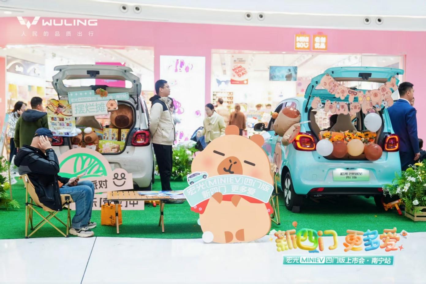 上市会现场潮改展车组成沉浸式市集,让众多消费者对宏光MINIEV四门版的时尚外观、宽敞空间、强劲动力和长续航能力赞不绝口。四门版车型的后排车门始终是焦点。不少体验过新车的消费者表示,宏光MINIEV四门版不仅满足了他们对日常代步的需求,更在品质和性能上给他们带来了惊喜,745L的后备箱轻松提供创业的空间。