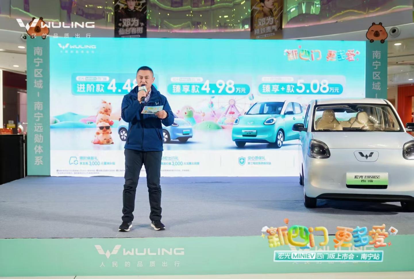 作为五菱宏光MINIEV家族的最新成员,四门版车型在继承了家族经典设计的同时,更融入了创新元素。五菱宏光MINIEV四门版推出三款售价——进阶款4.48万元、臻享款4.98万元、臻享+款5.08万元。这款“更懂中国家庭”的四门MINIEV,将从心出发,走向千万家。上汽通用五菱南宁市负责人王斌现场解读它的革新使命:精准进化车身长度控制在3.1米,比三门版仅增加15cm,却实现了四门四座+后备箱双层储物;安全性能越级提升采用环状笼式车身结构,高强钢占比67%,最高抗拉强度1500MPa;还特别推推出至高价值1万元的“宠爱四重礼”(含置换补贴、龙膜、充电桩及三电终身质保),让每一位购车者都能感受到五菱的诚意与关怀。