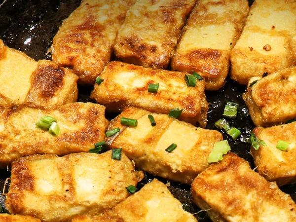 在这个过程中,豆腐表面会长出一层寸把长的白色绒毛,这是毛豆腐独特风味的来源。最后一步是煎制烹饪,将发酵好的毛豆腐放入油锅中煎炸至两面金黄,即可享用。徽州毛豆腐以其独特的味道和丰富的历史背景深受人们喜爱。一根扁担挑两头,一头柜子一头火炉。