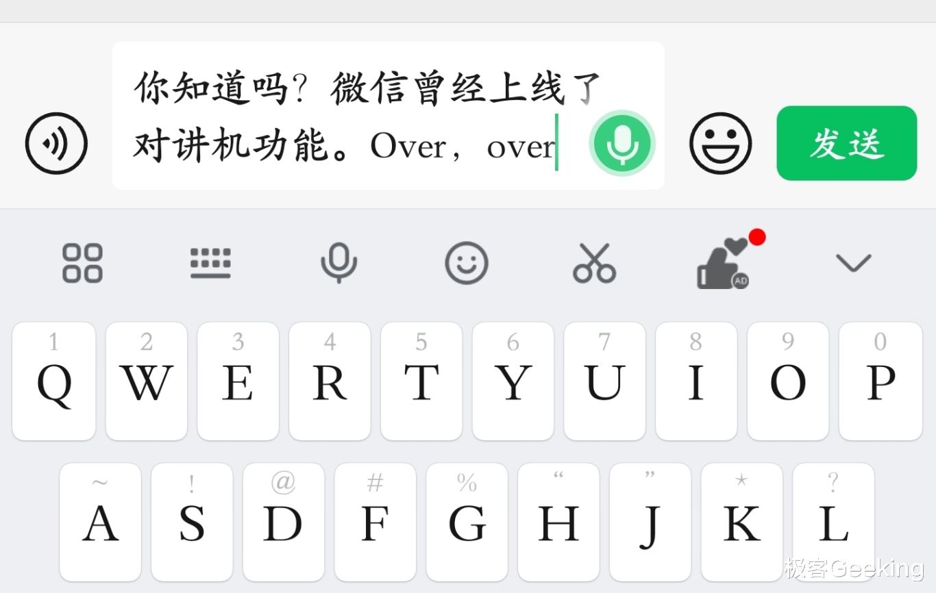 2、聊天框语音快捷转文字进一步覆盖在以往微信版本 v8.0.62 内测版的更新内容总结中,极客君已经介绍了微信新增输入框麦克风的功能,也就是语音可以快捷转文字了,不过处于灰度测试中,并不是所有用户都能体验到,而现在,这一功能进一步扩大上线范围。