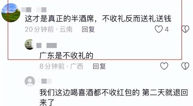 既能吃酒还能拿到钱,这买卖是真划算!当很多网友表示羡慕时,当地人也表示“广东是不收礼的”,这也不得不让人感慨,虽然同出于中国,各个地方的差异确实大。