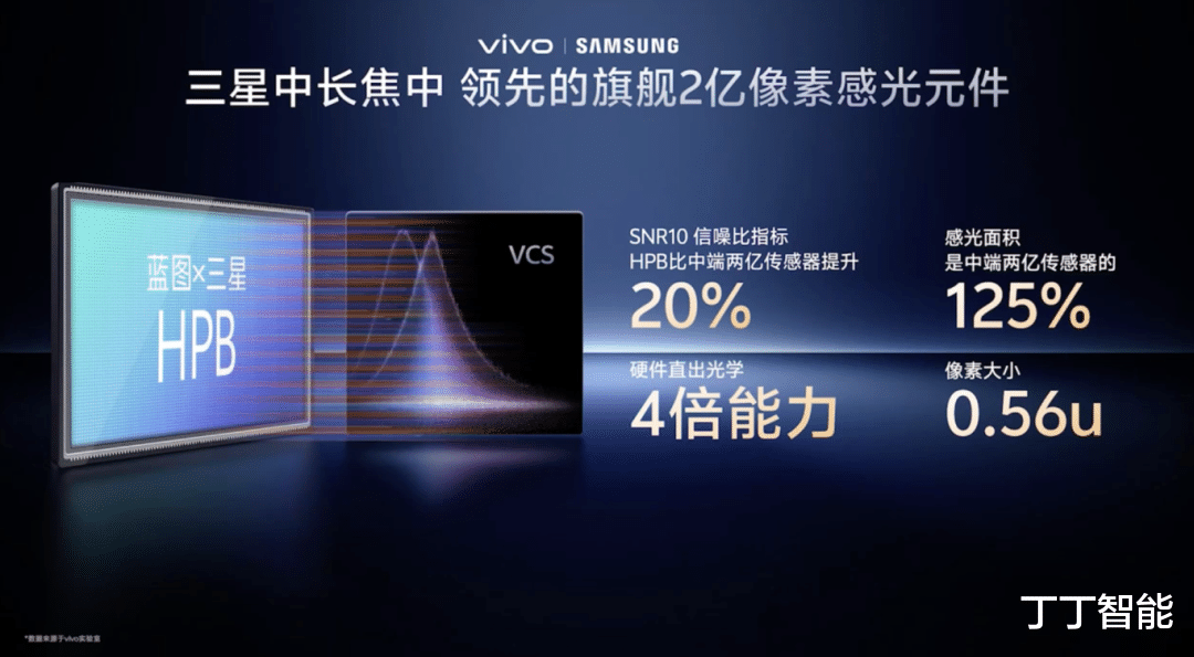 先看 “大王” X300 Pro,长焦直接从三星 HP9 换成和三星联合定制的 HPB,还是 1/1.4 英寸大底、2000 万像素,像素尺寸 0.56μm。