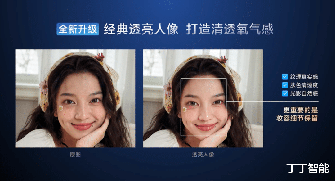 人像模式这次玩出了新花样,新增 “透亮氧气美”“自然原生美”“元气骨相美” 三种美颜模式,喜欢清透风、自然风还是立体骨相,随便选。
