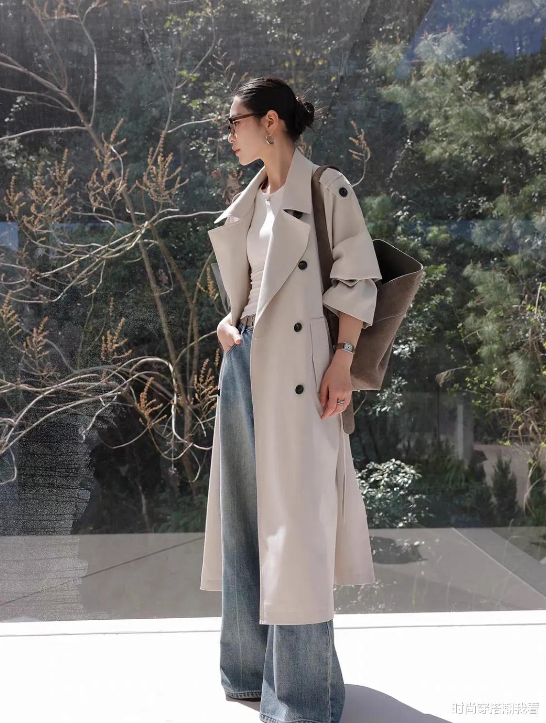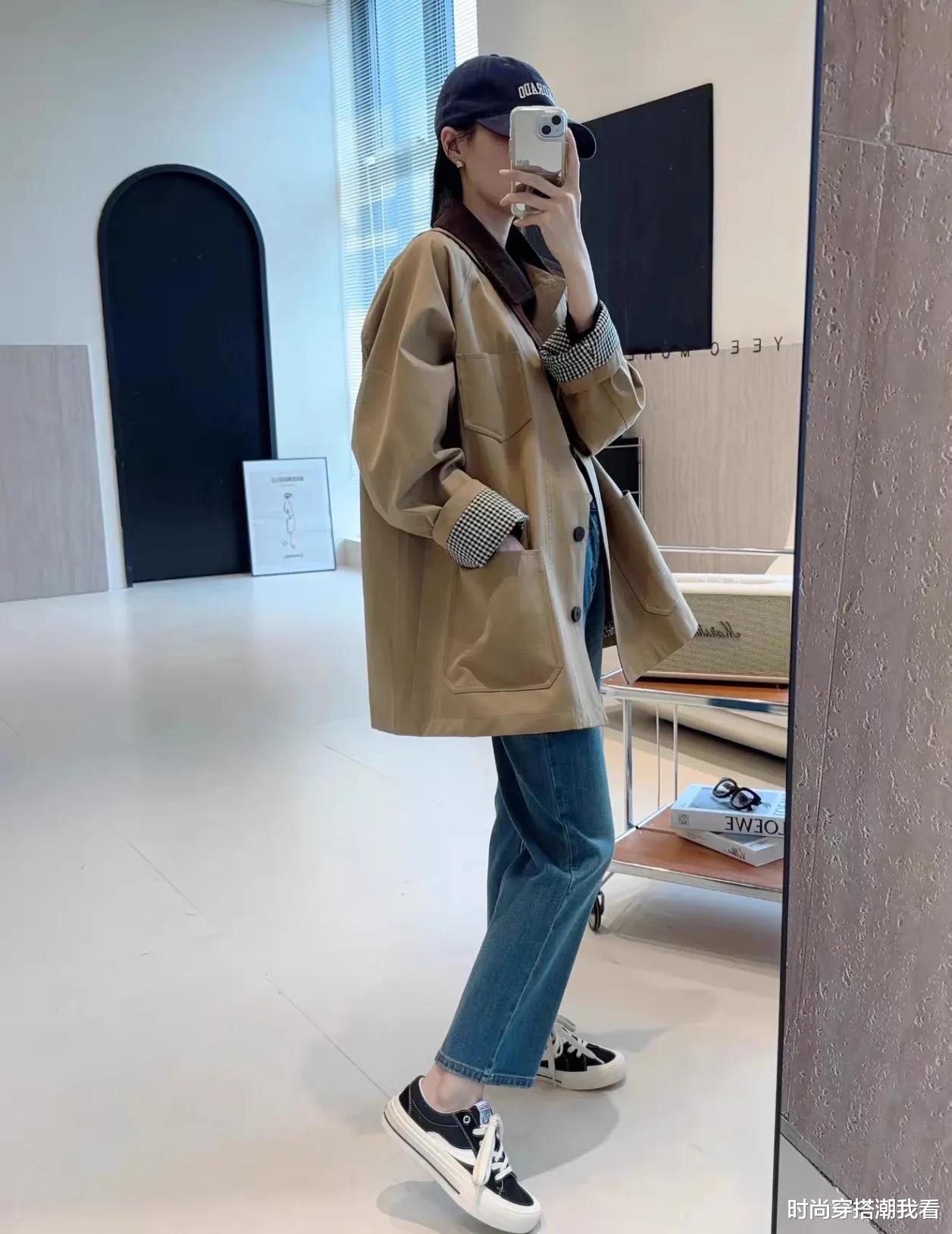 风衣是秋天的标志性单品,它那潇洒的版型和强大的气场,让人穿上就仿佛自带主角光环。而牛仔裤则是时尚界的常青树,无论什么时候都不会过时。这两者的结合,堪称经典中的经典。