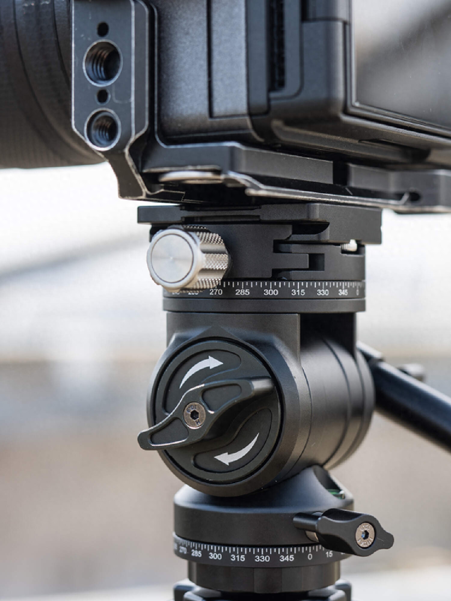 考虑到视频云台形态的关系,即便快装板用的是阿卡标准,ta 也不能像球形云台那样直接横着放机器。