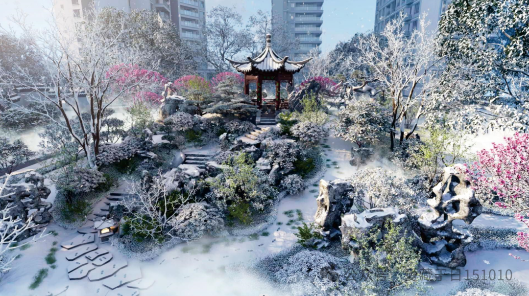 春园里,耗资一间房价钱购入的太湖石装点的宿春亭生机盎然;夏园的晓夏舫临池而建,万福石上的蝙蝠纹路藏着吉祥寓意,青翠亭的人工瀑布传来潺潺水声;秋园的紫薇树“怕痒” 善舞,从四川达州寻来的红果冬青造型奇特,24 棵 30 年树龄的香樟树散发着沁人香气,其中最粗壮的一棵价值堪比两套大平层;冬园的冬梅榭临水而立,墙角寒梅与 “隔牖风惊竹” 的诗刻相映成趣,预留的小山丘是观赏雪景的绝佳去处。凌江阁作为全园制高点,与青龙塔隔江相望,登阁可赏 “一阁观四季,一池纳乾坤” 的盛景,未来将作为业主休闲会所开放。