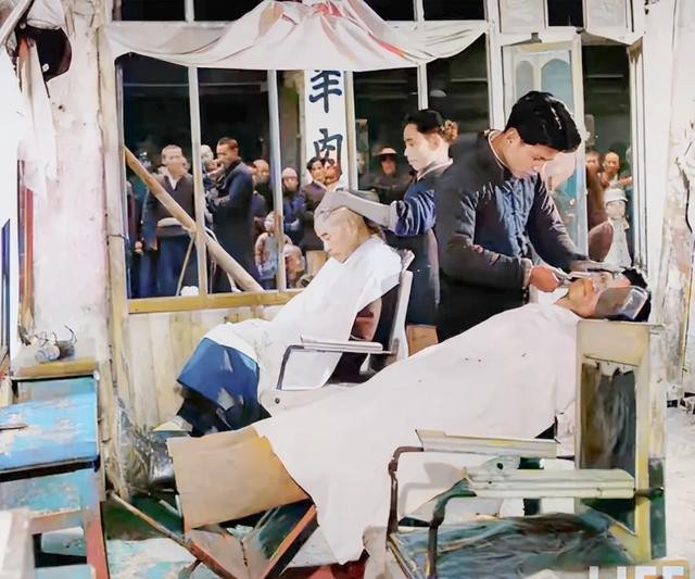 △1948年,南大街上的理发店,对面是一家羊肉泡馍店