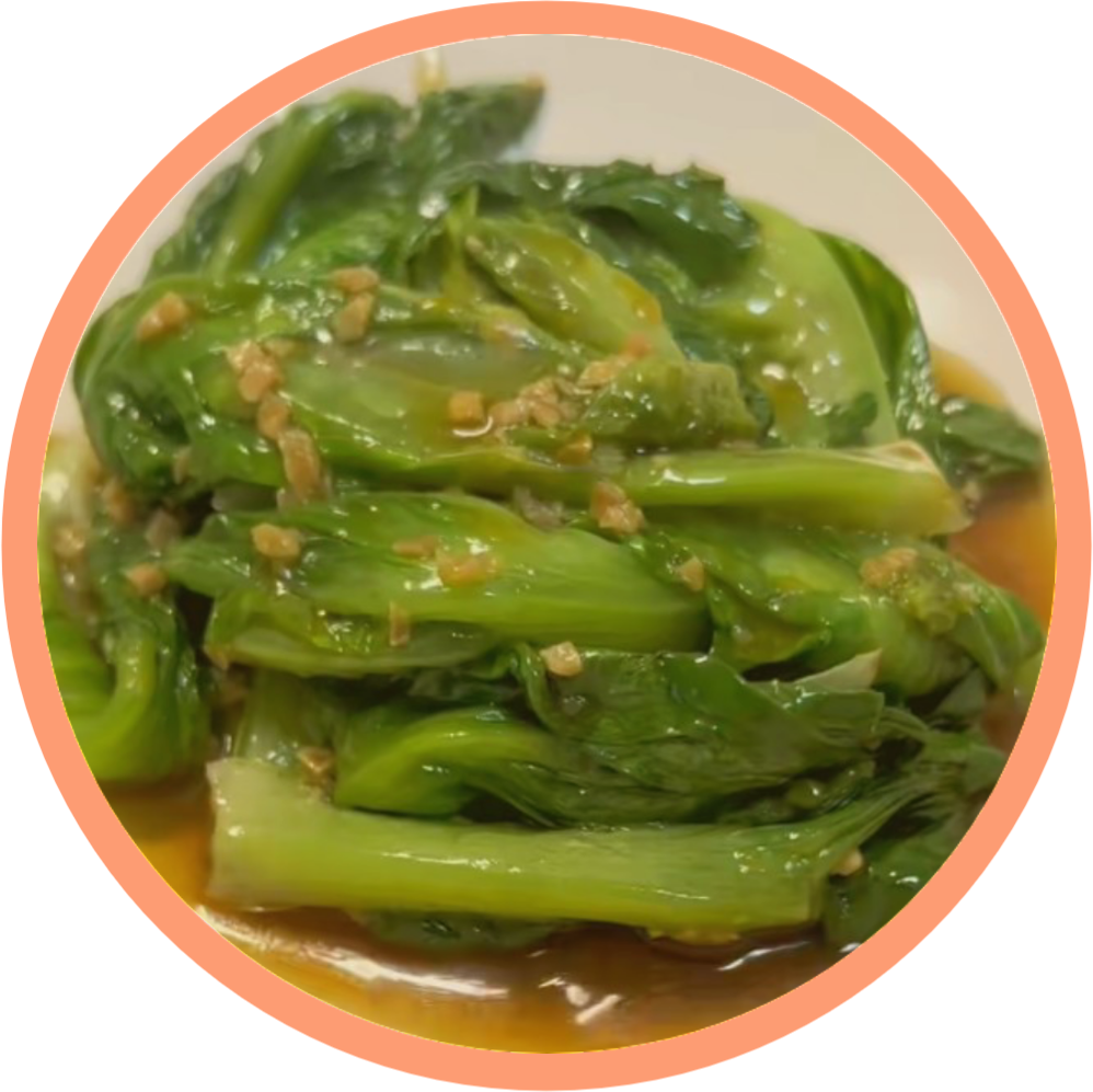 3. 将生菜放入微波炉耐热碗中,倒入蒜蓉酱,拌匀。