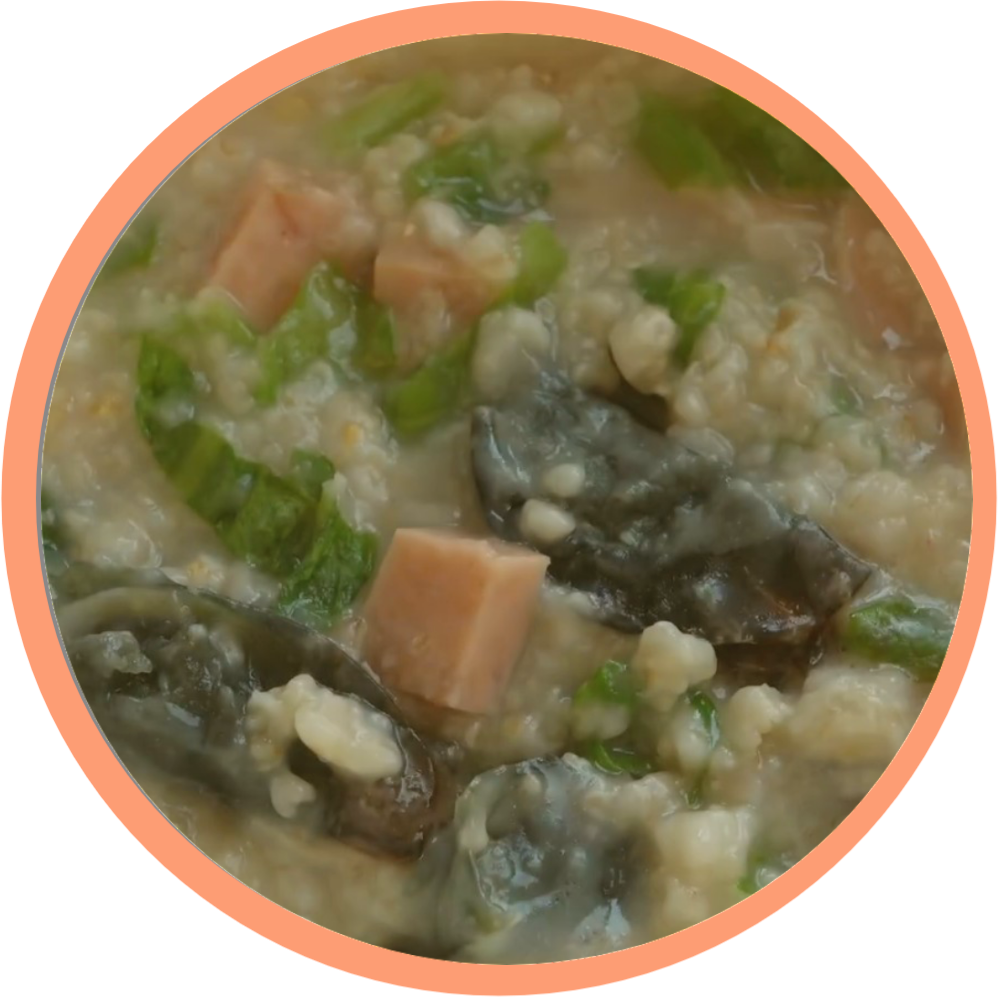 5. 再盖膜,中火加热5分钟,直到粥粘稠,其他的都熟透了。